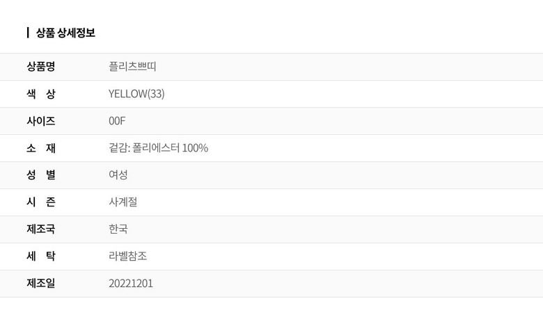 | 2. 소재 | 겉감: 폴리에스터 100% |