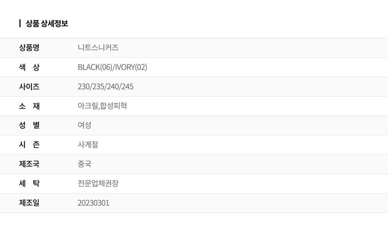 | 2. 색상 | 색상:BLACK(06)/IVORY(02) |