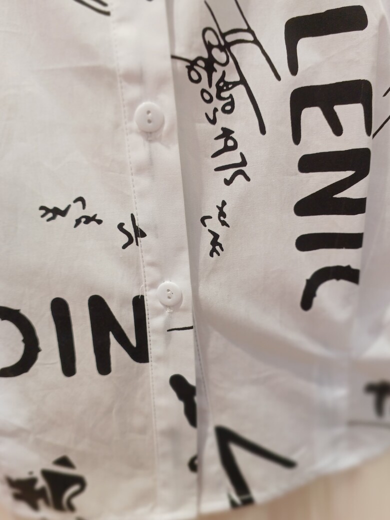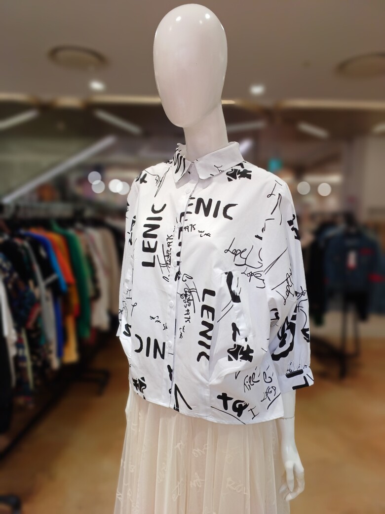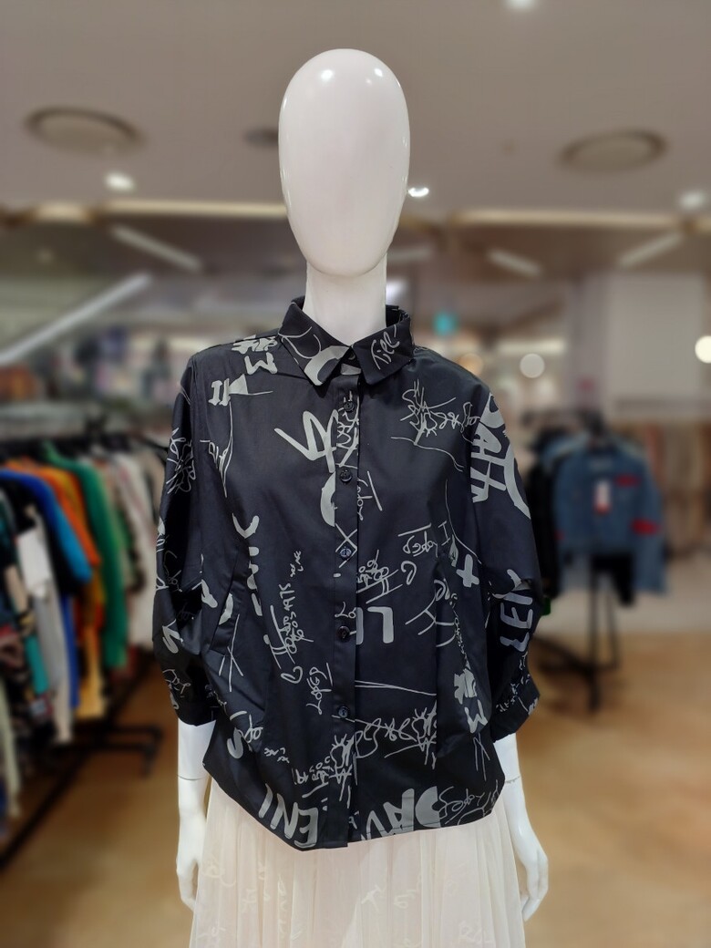 르니앤맥코이 핀턱 레터링 칠부 셔츠 블라우스MM03BL073