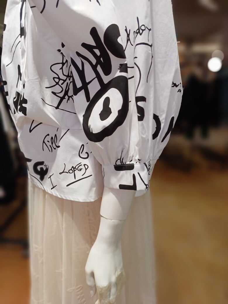 레터링 프린트 팬턴 7부소매 블라우스입니다