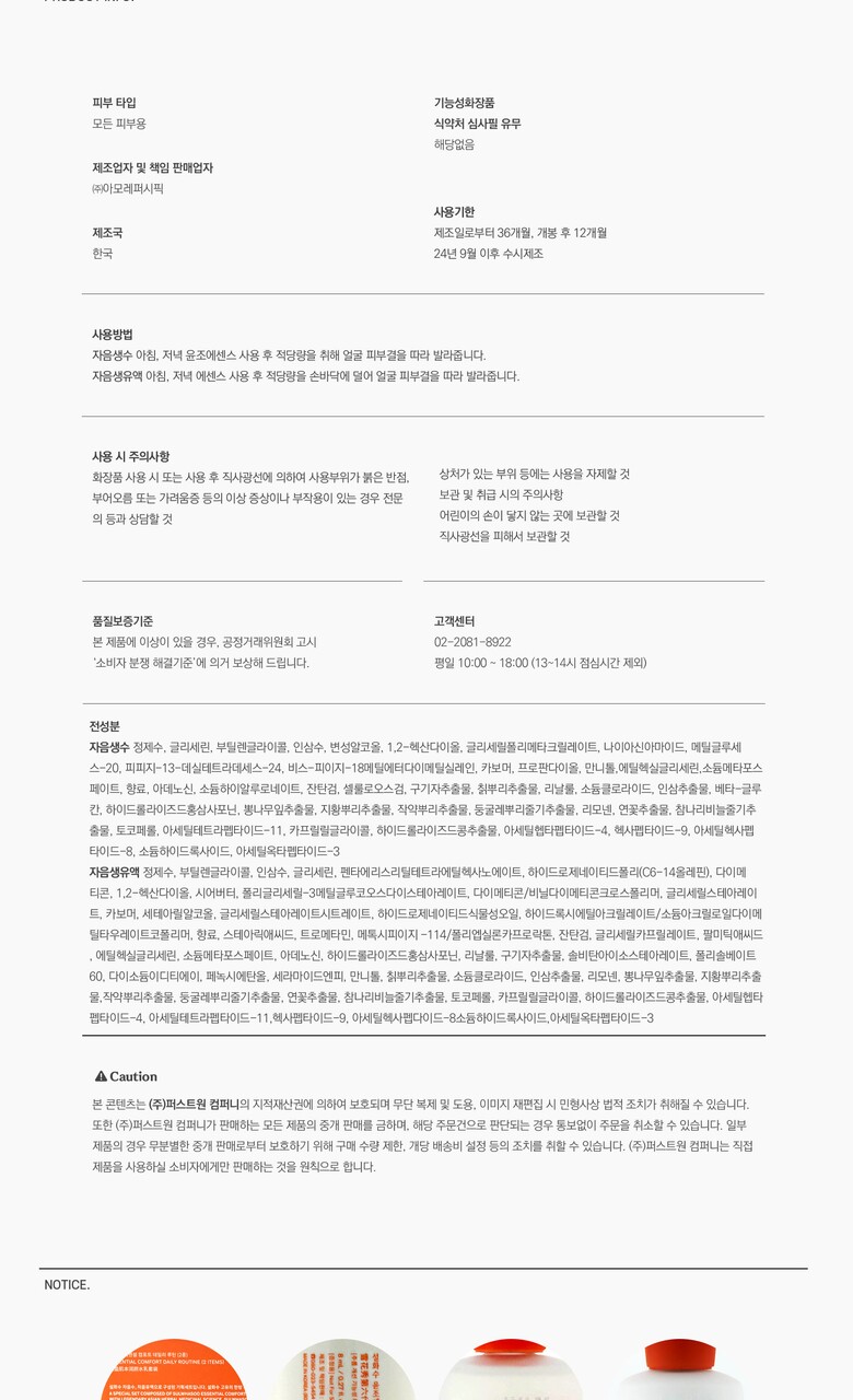 8. 기능성 화장품의 경우 화장품법에 따른 식품의약품안전청 심사 필 유무 | 상품상세참조 |