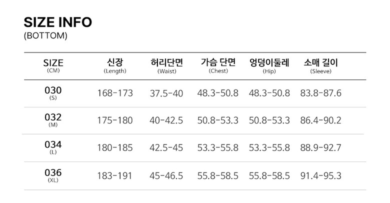 | 3. 치수 | 30,32,34,36 |