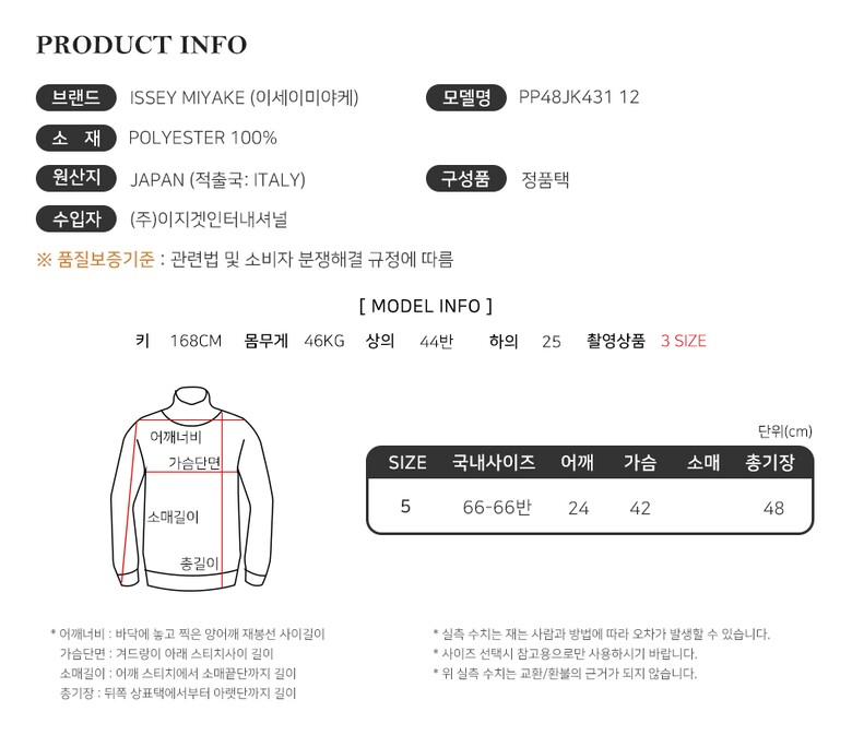 | 1. 제품 소재 (섬유의 조성 또는 혼용률을 백분율로 표시, 기능성인 경우 성적서 또는 허가서) | 상세페이지 참조 |