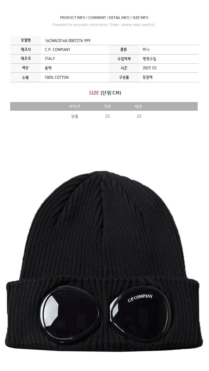 CP 25SS 시그니처 고글 코튼 비니 블랙 18CMAC016A 000727A 999