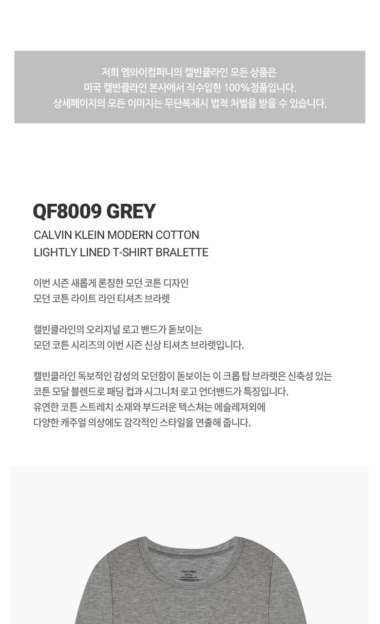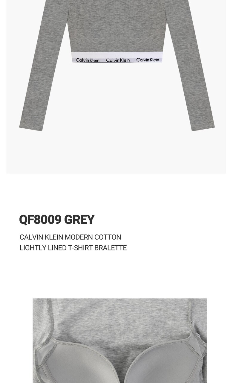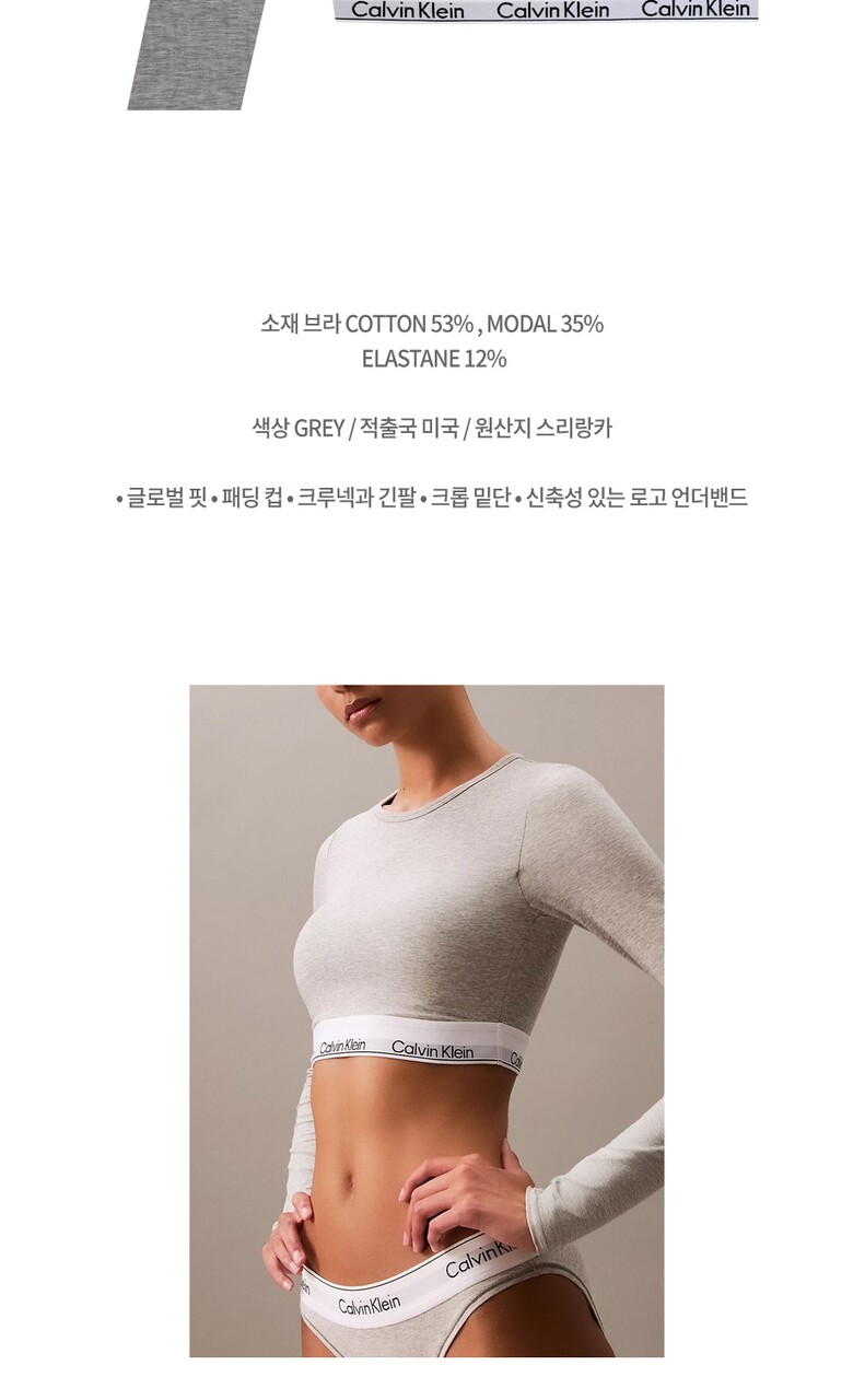 CK 여성 모던 코튼 긴팔 티셔츠 크롭 탑 브라렛 QF8009 GREY