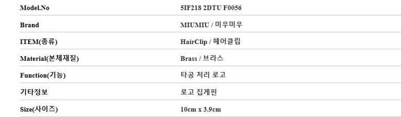 미우미우 헤어클립 5IF218 2DTU F0056 로고 집게핀 여성헤어클립 당일발송