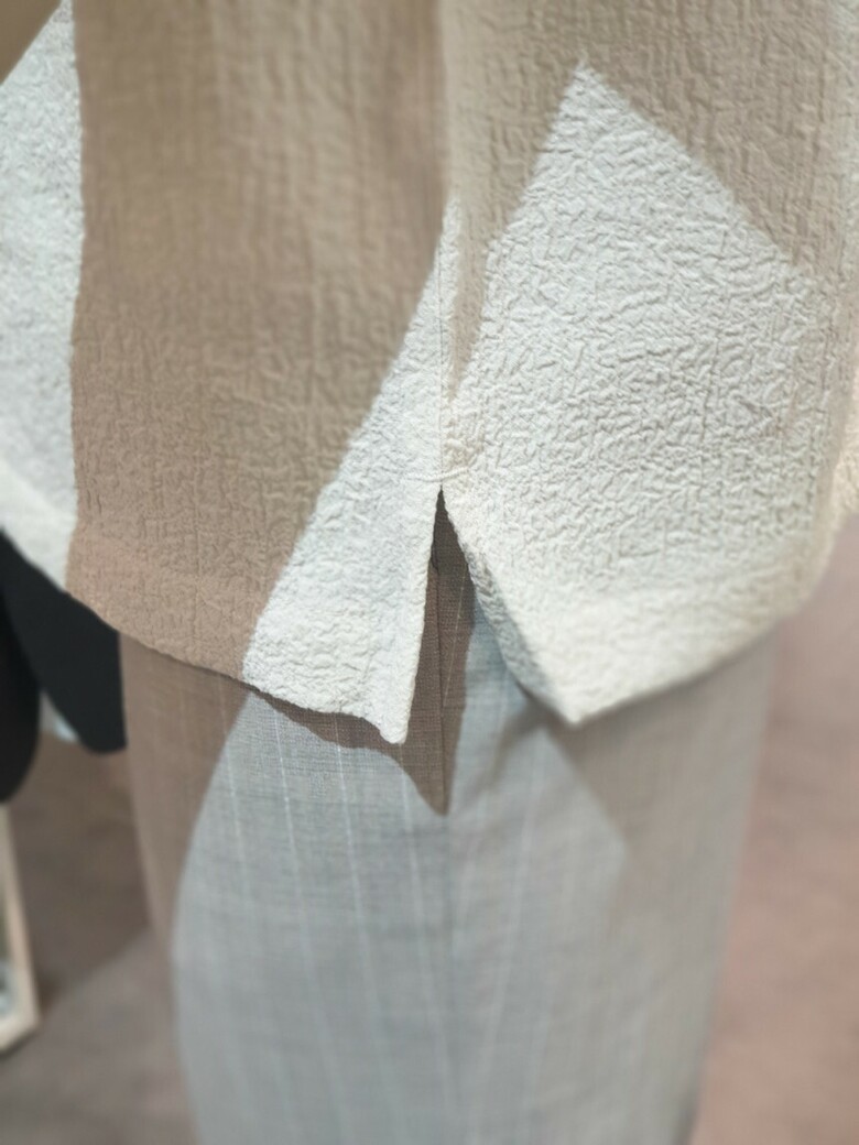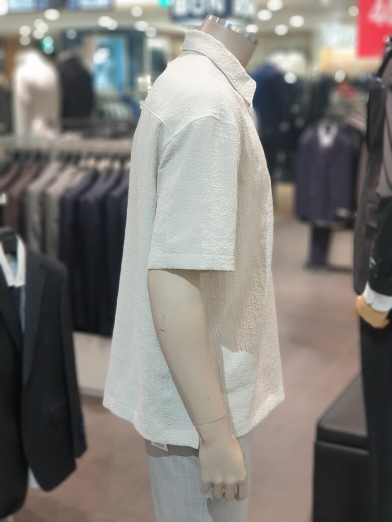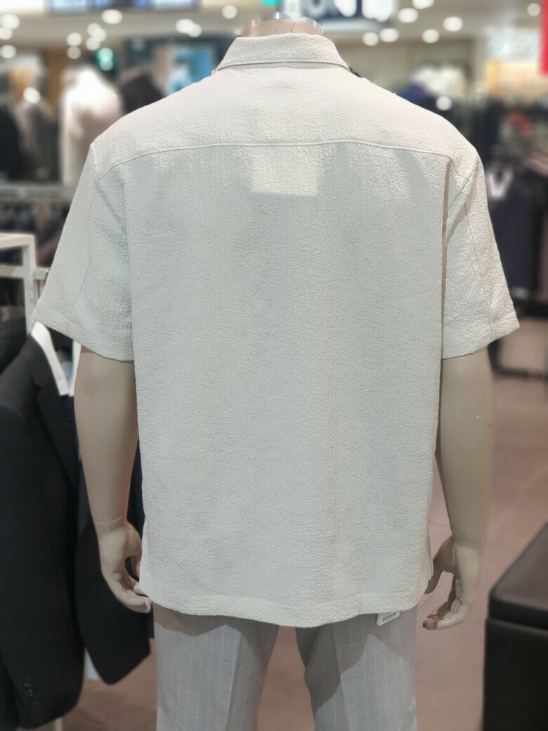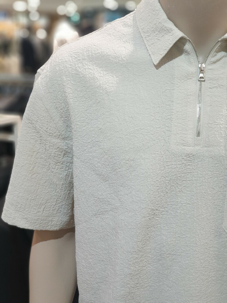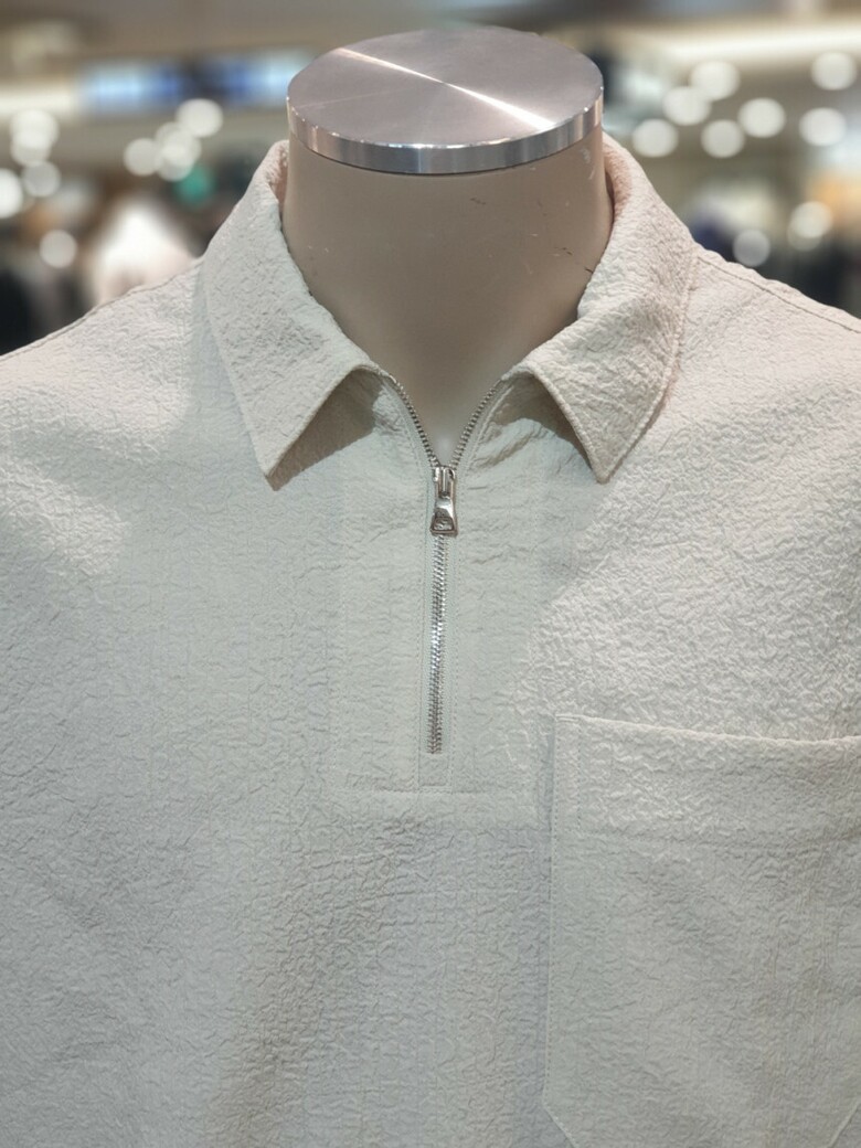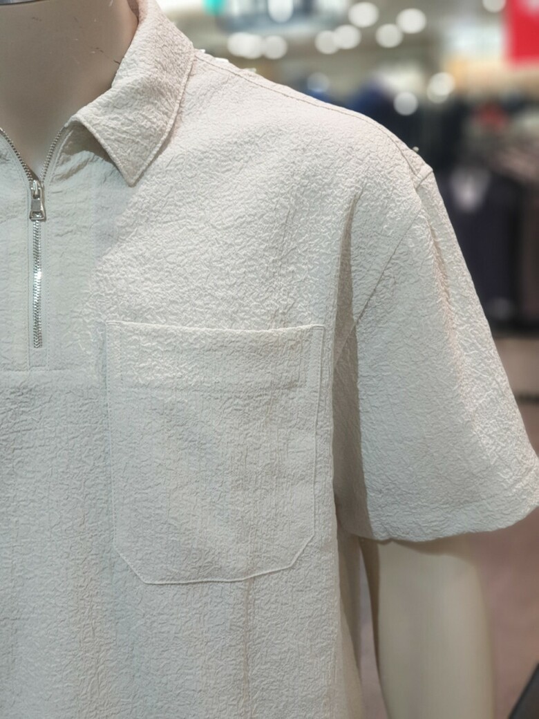 BON 25SS 아이보리 시어 써커 반짚업 티에리 캐주얼 반팔 티셔츠 BNEMTS782IV