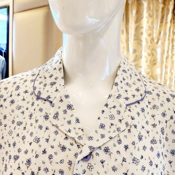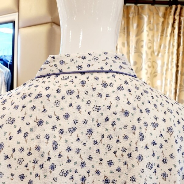 기본 파자마 카라 디자인의 남성 제품 입니다. 카라 끝에 배색감으로 포인트를 주었습니다.