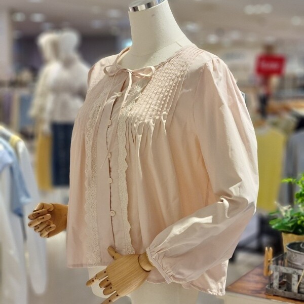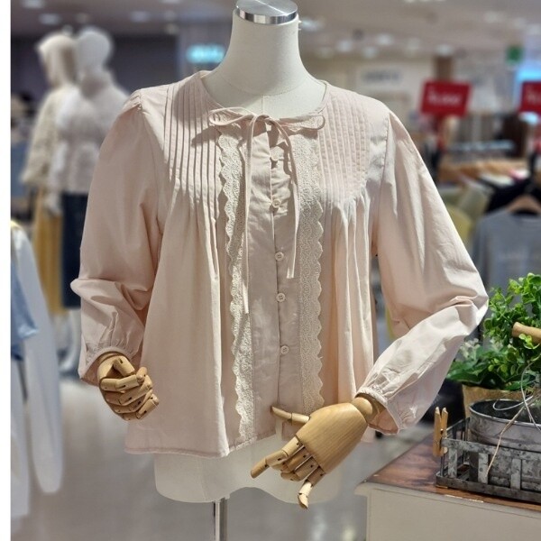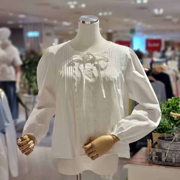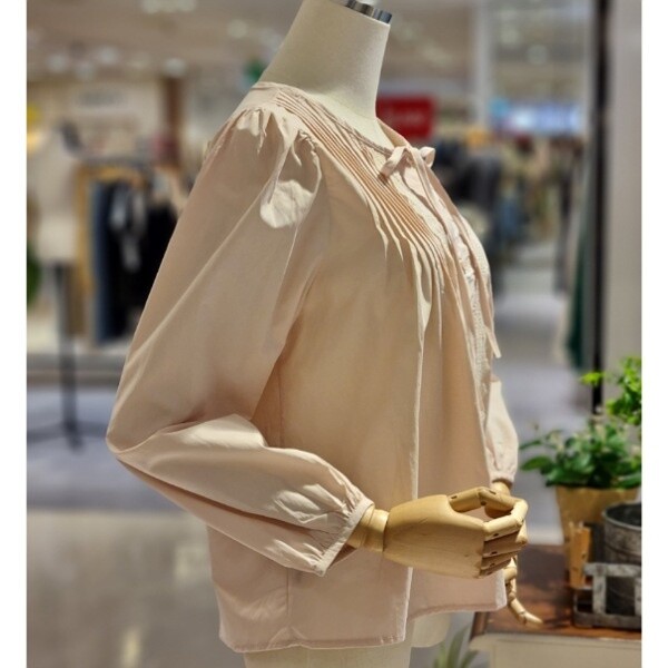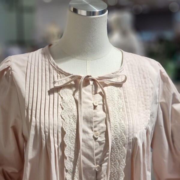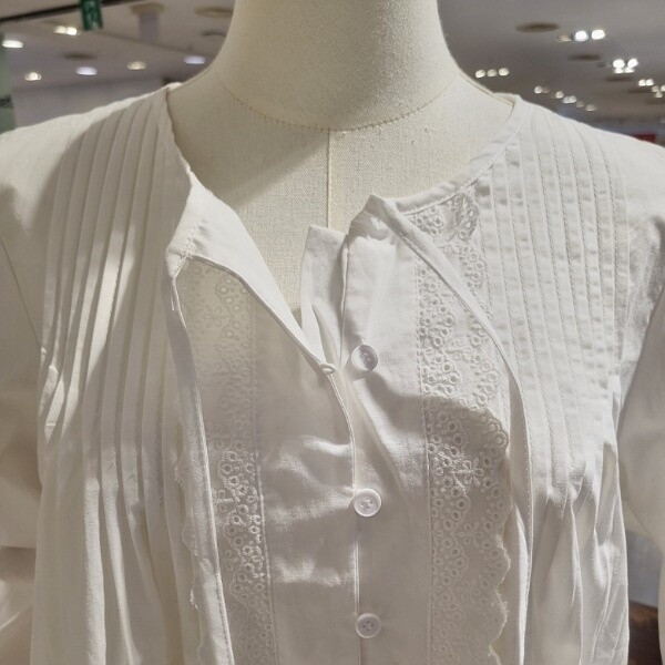 핀턱주름으로 여유핏 라운드넥 레이스 디테일면