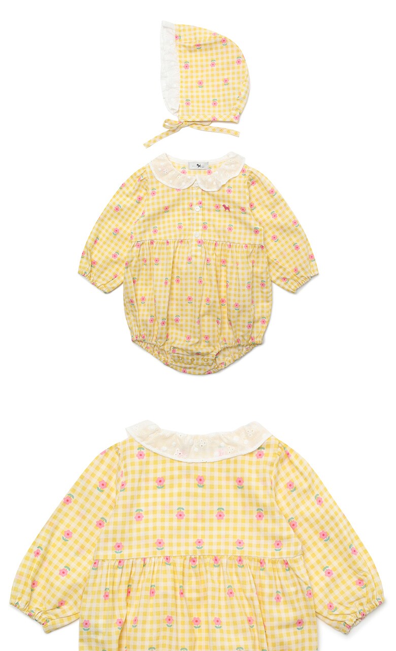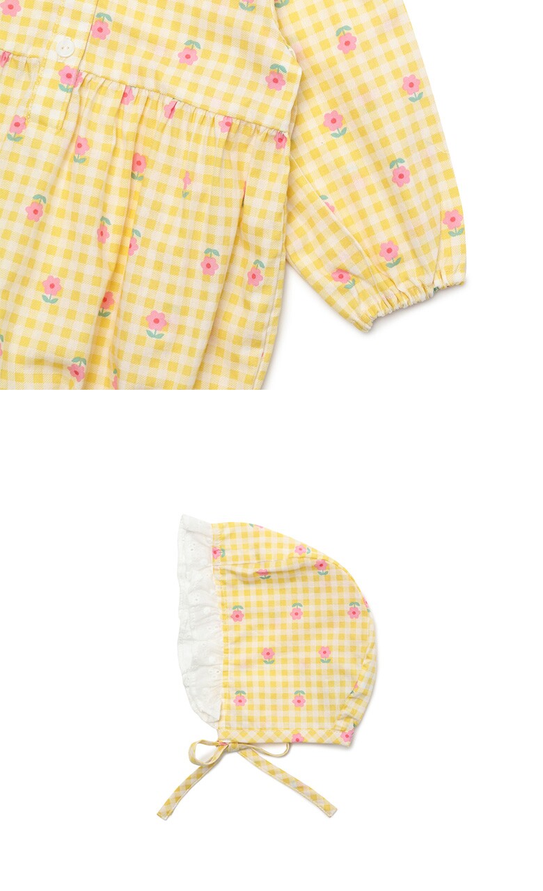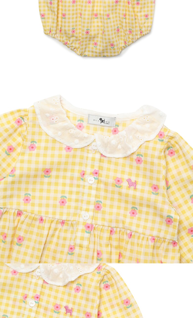 [블루독베이비] 러블리 체크 바디수트SET (YE)