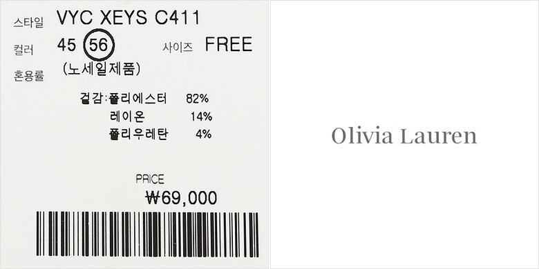 2. 소재 겉감:폴리에스터82% 폴리우레탄4% 레이온14%