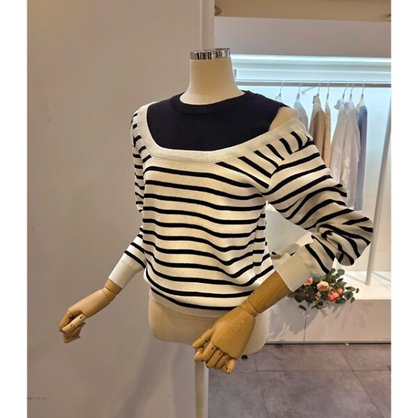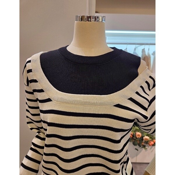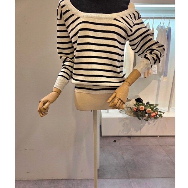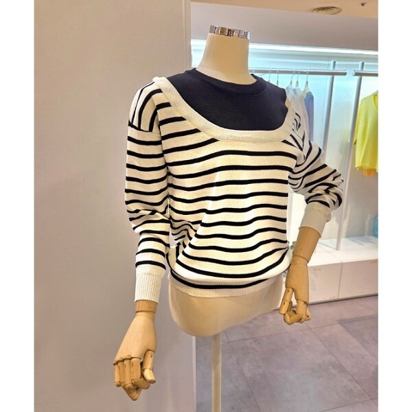CP2WKT24_숄더 포인트 줄무늬 니트