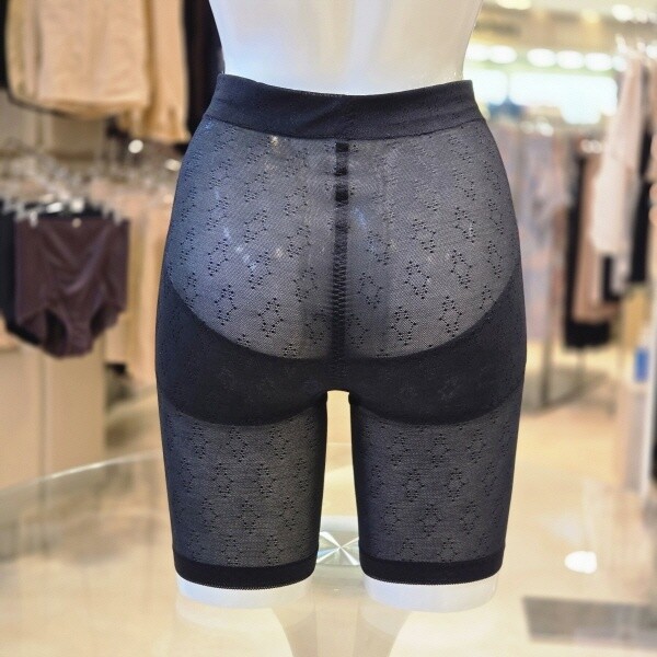 소프트하고 신축 좋은 면혼방 파워네트 사각거들로 쾌적한 착용감 주며 허리는 원단을 접어 테이프의 압박을 줄이고 복부 정리와 힙업 기능이 있는 제품