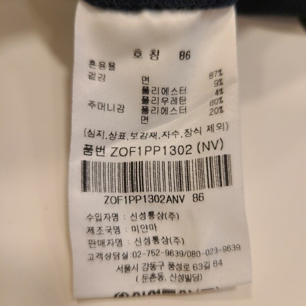 | 1. 제품 소재 (섬유의 조성 또는 혼용률을 백분율로 표시, 기능성인 경우 성적서 또는 허가서) | 면,폴리에스터,폴리우레탄 |