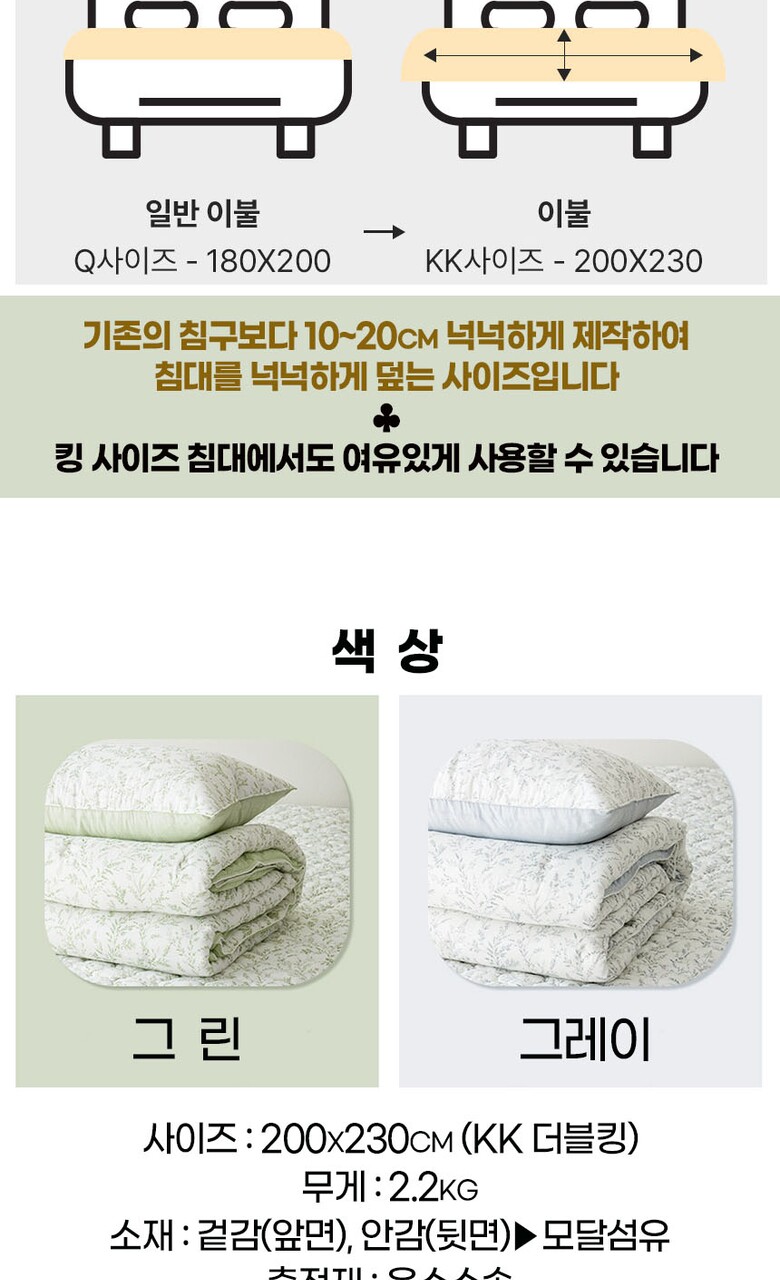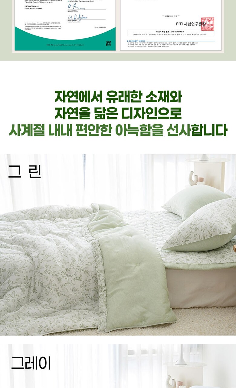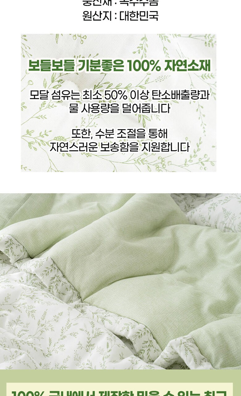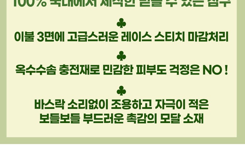 1. 제품 소재 | 겉감(앞면), 안감(뒷면) 모달섬유 충전재 옥수수솜 |