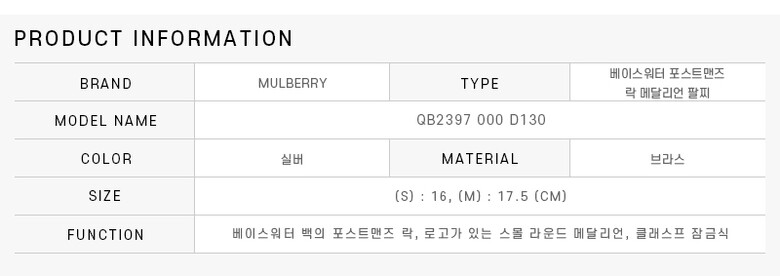 - #리본즈코리아 #QB2397000D130 #[명품] #멀버리 #QB2397 #000 #D130 #베이스워터 #포스트맨즈 #락 #메달리언 #실버 #팔찌 #여성 #시계/액세서리 #팔찌/발찌