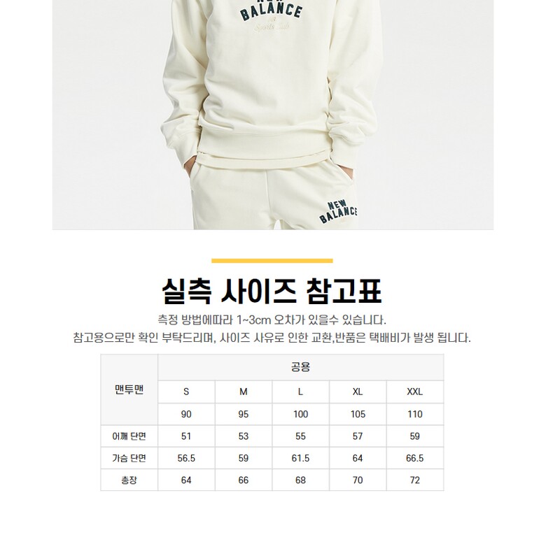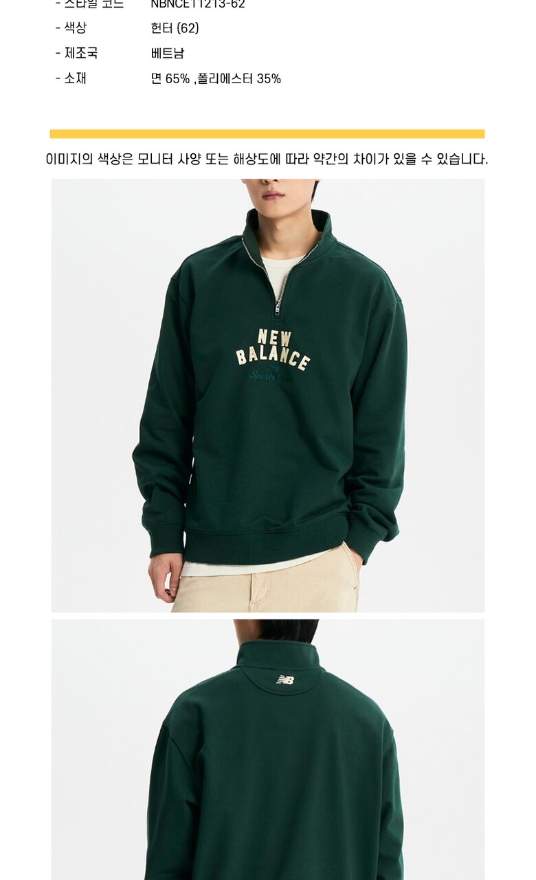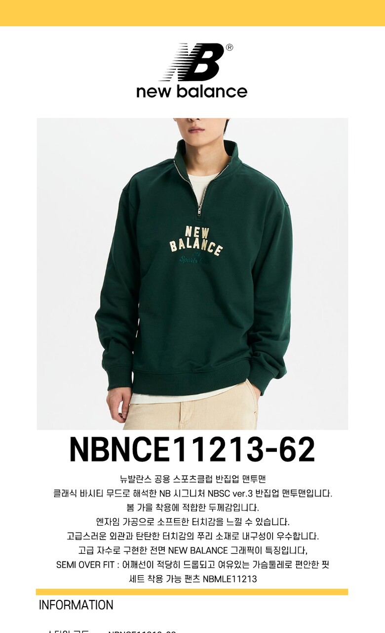 뉴발란스 공용 스포츠클럽 세미오버핏 반집업 맨투맨 NBNCE11213-62