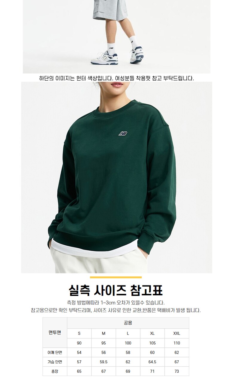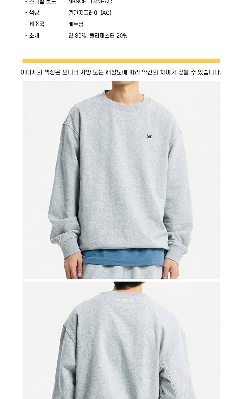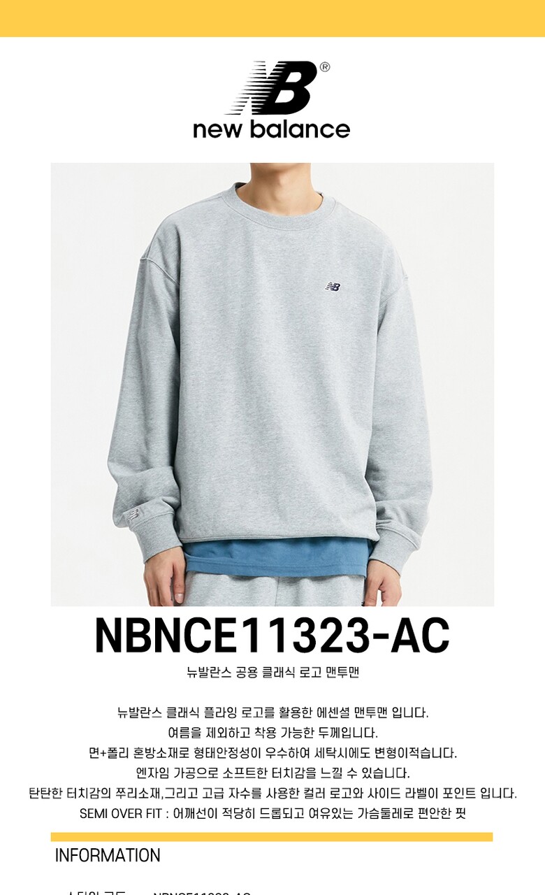 뉴발란스 공용 클래식 로고 세미오버핏 맨투맨 NBNCE11323-AC