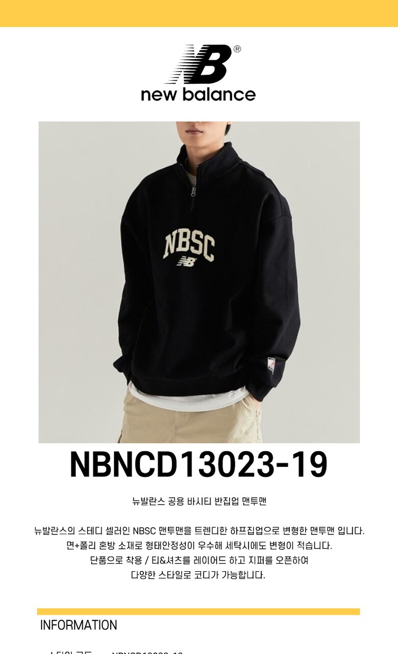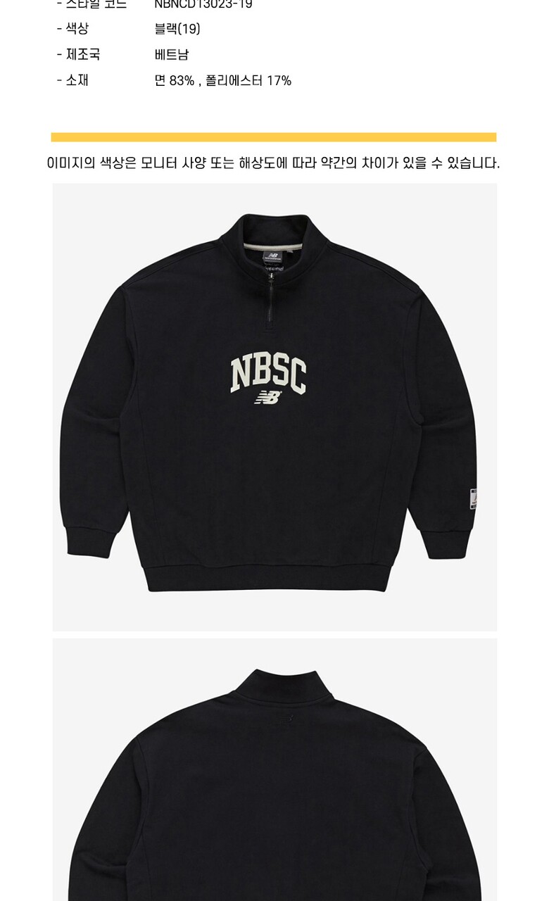 뉴발란스 공용 바시티 반집업 맨투맨 NBNCD13023-19