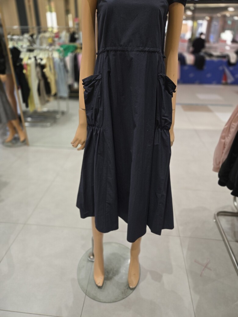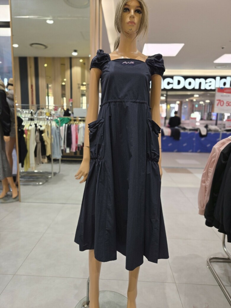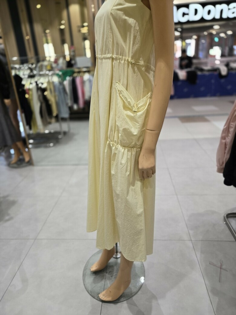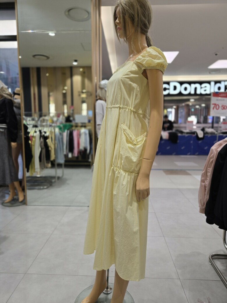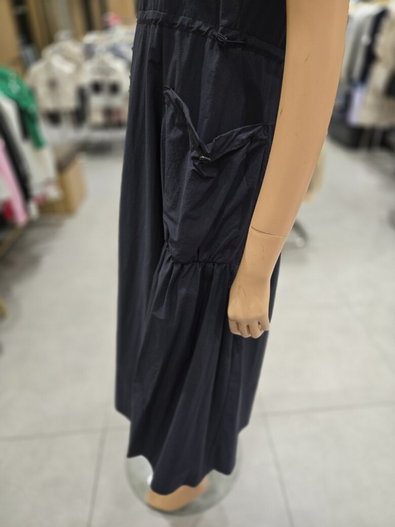 스퀘어넥 스트링 볼륨포켓 롱 원피스 EQ2OOP-05