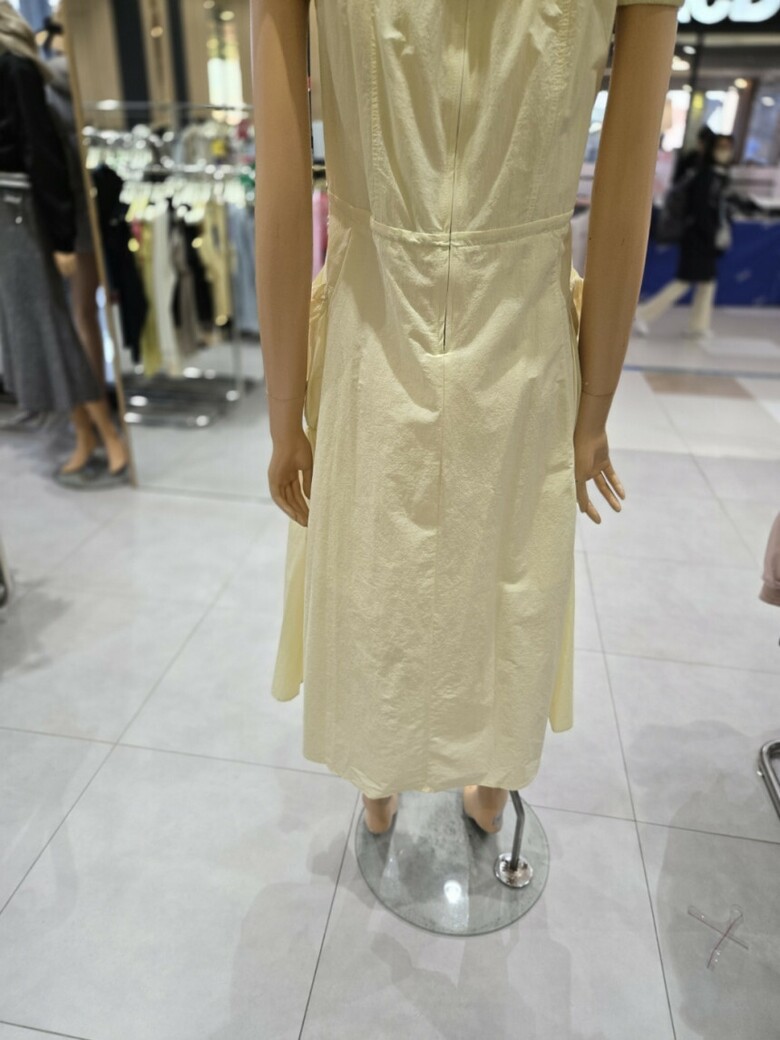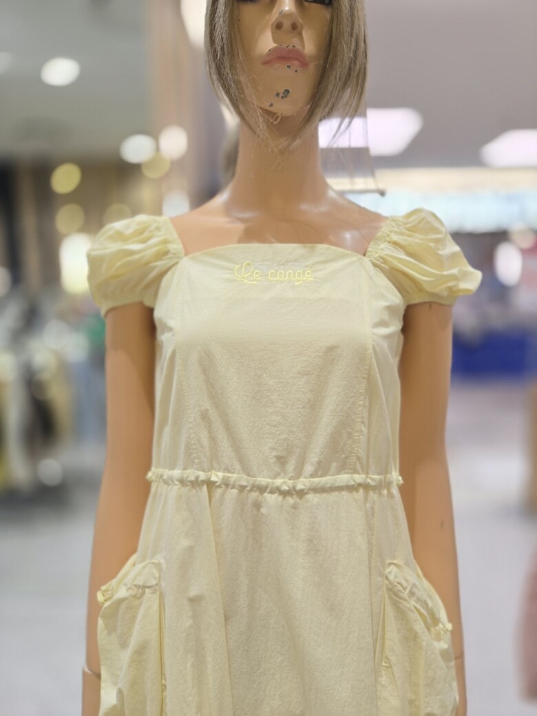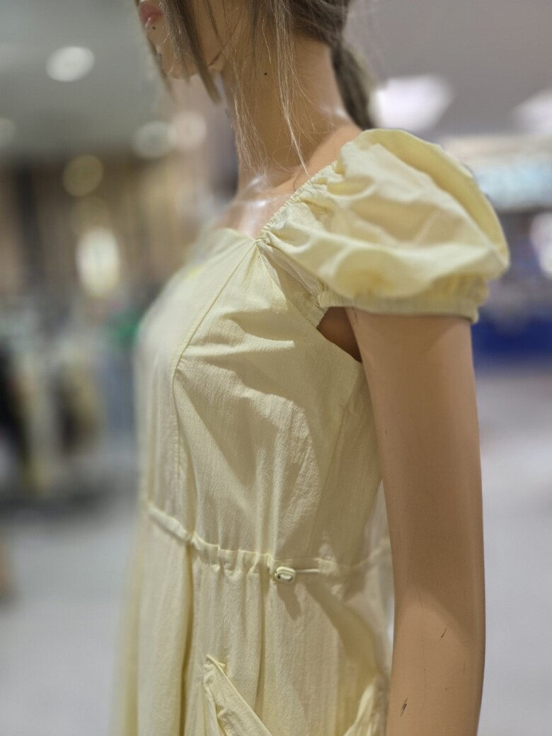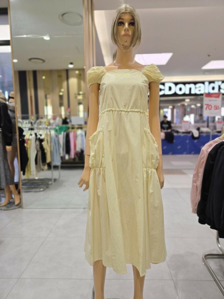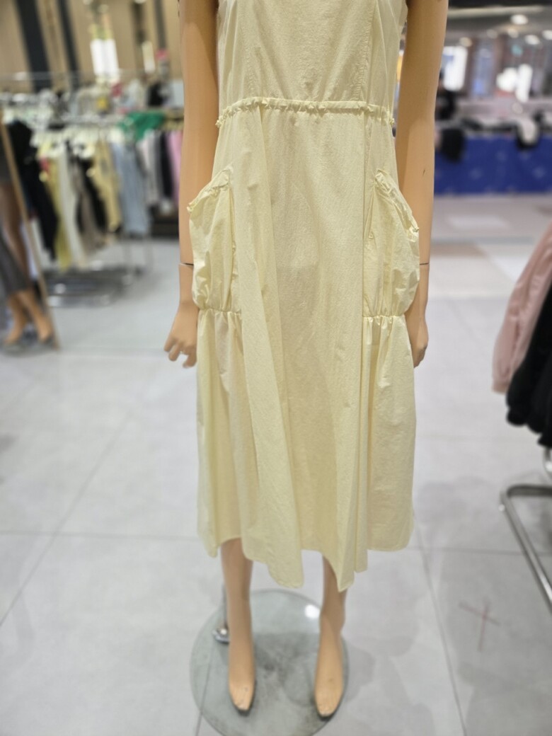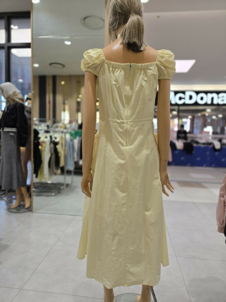 스퀘어넥 스트링 볼륨포켓 롱 원피스 EQ2OOP-05
