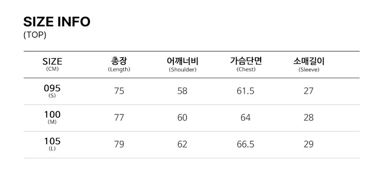 | 3. 치수 | 095, 100, 105 |