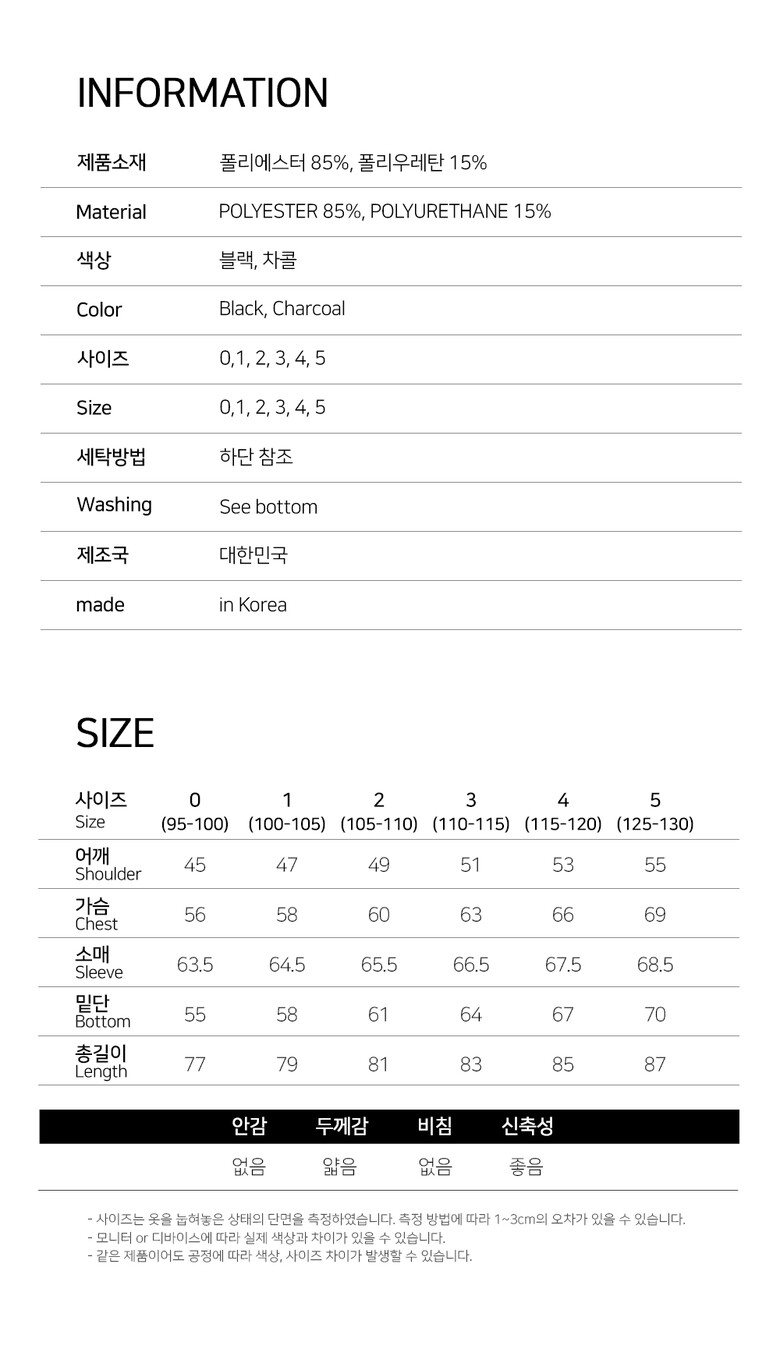 1. 제품 소재 (섬유의 조성 또는 혼용률을 백분율로 표시, 기능성인 경우 성적서 또는 허가서) | 폴리에스터85%,폴리우레탄15% |