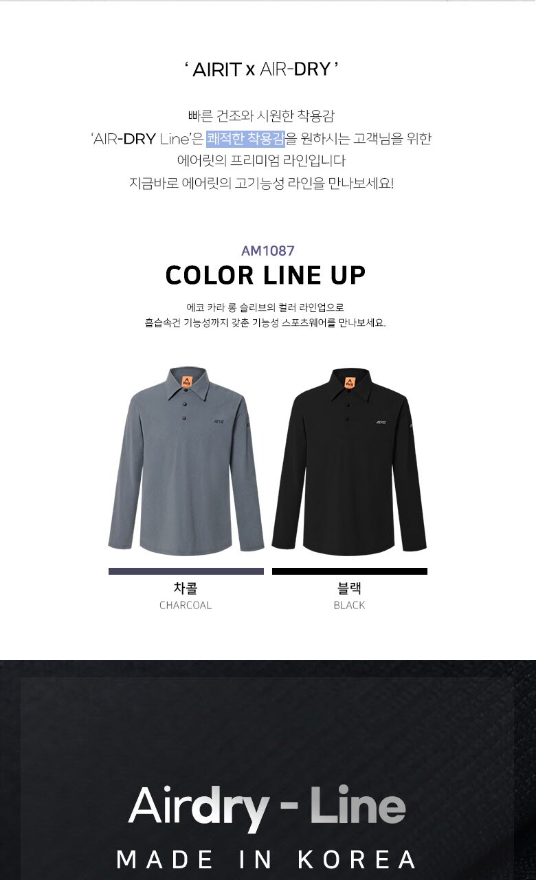 [에어릿] 에코 카라 롱슬리브 AM1087 BK
