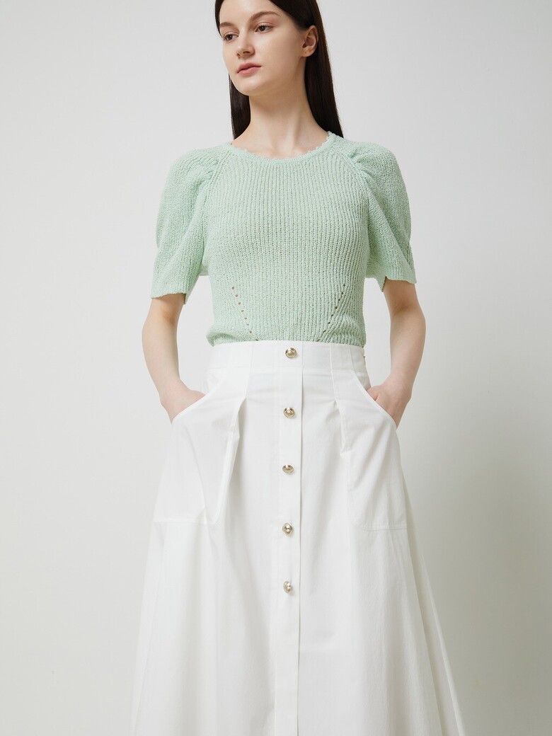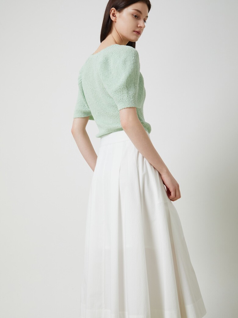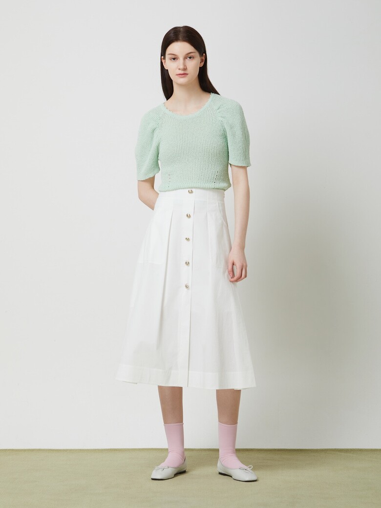 페미닌한 무드의 풍성한 플레어 스커트입니다.