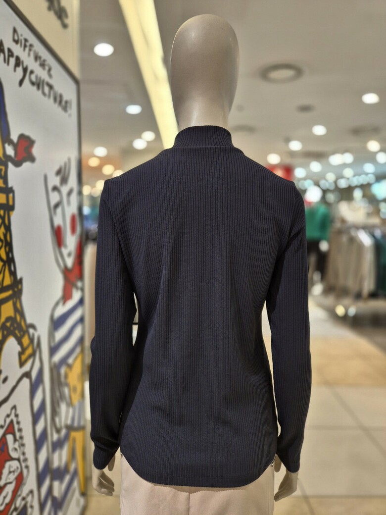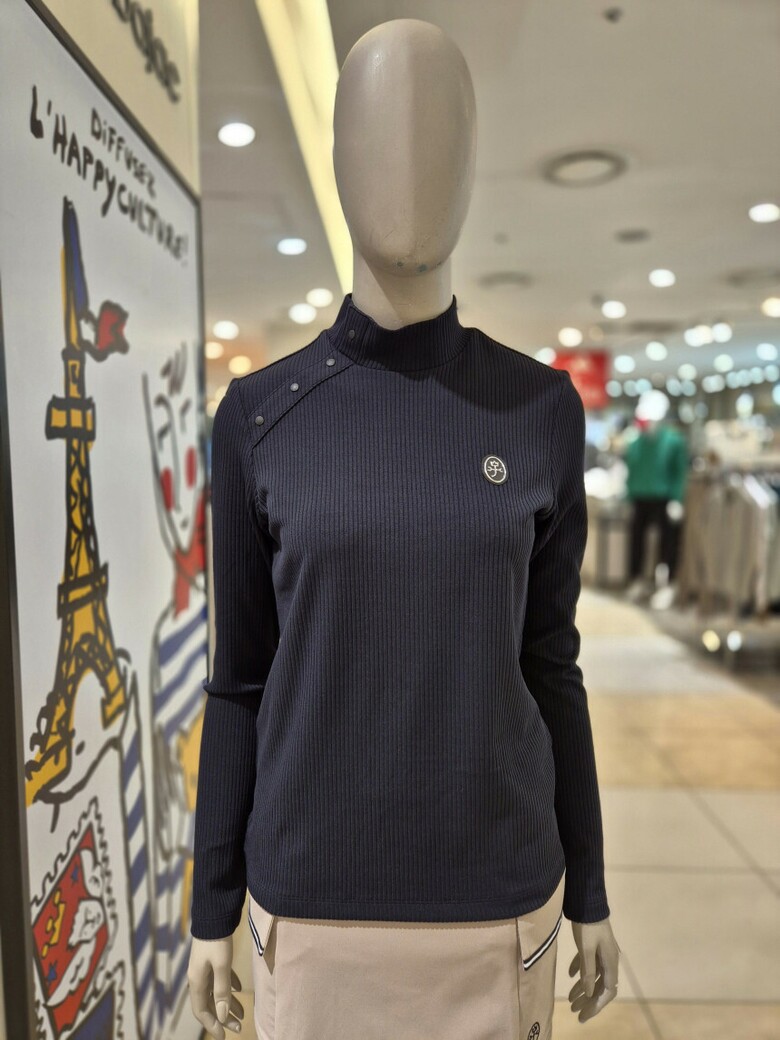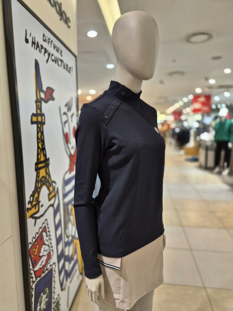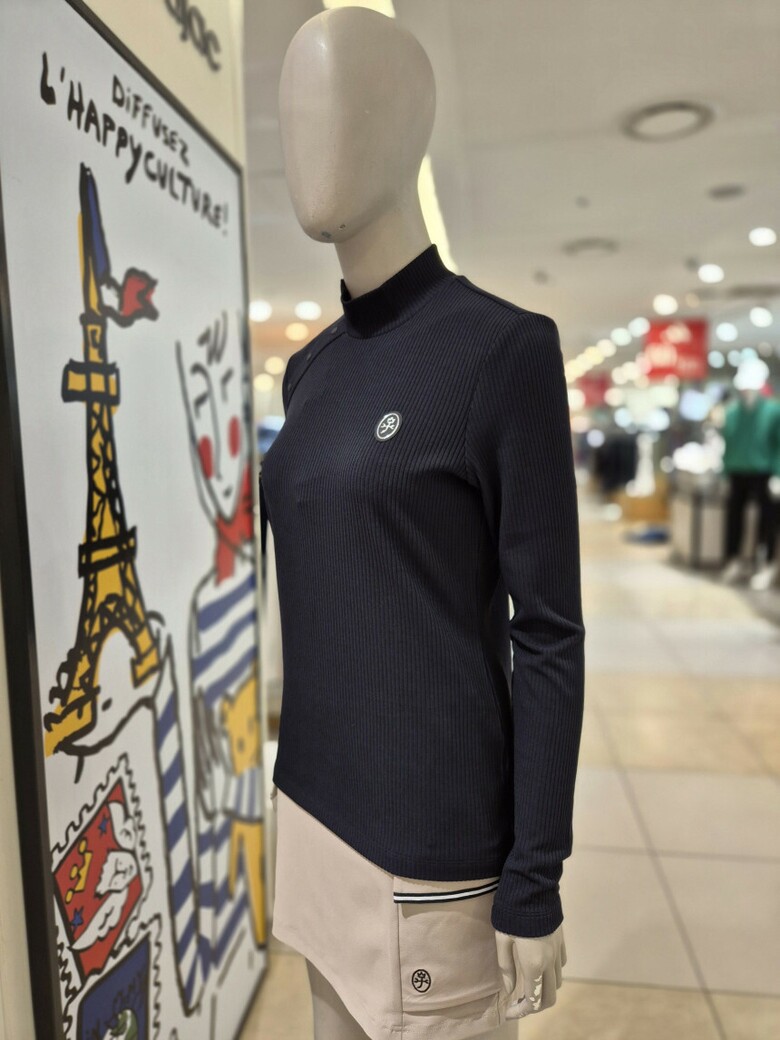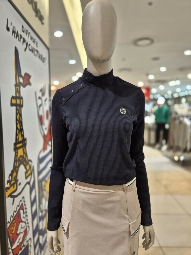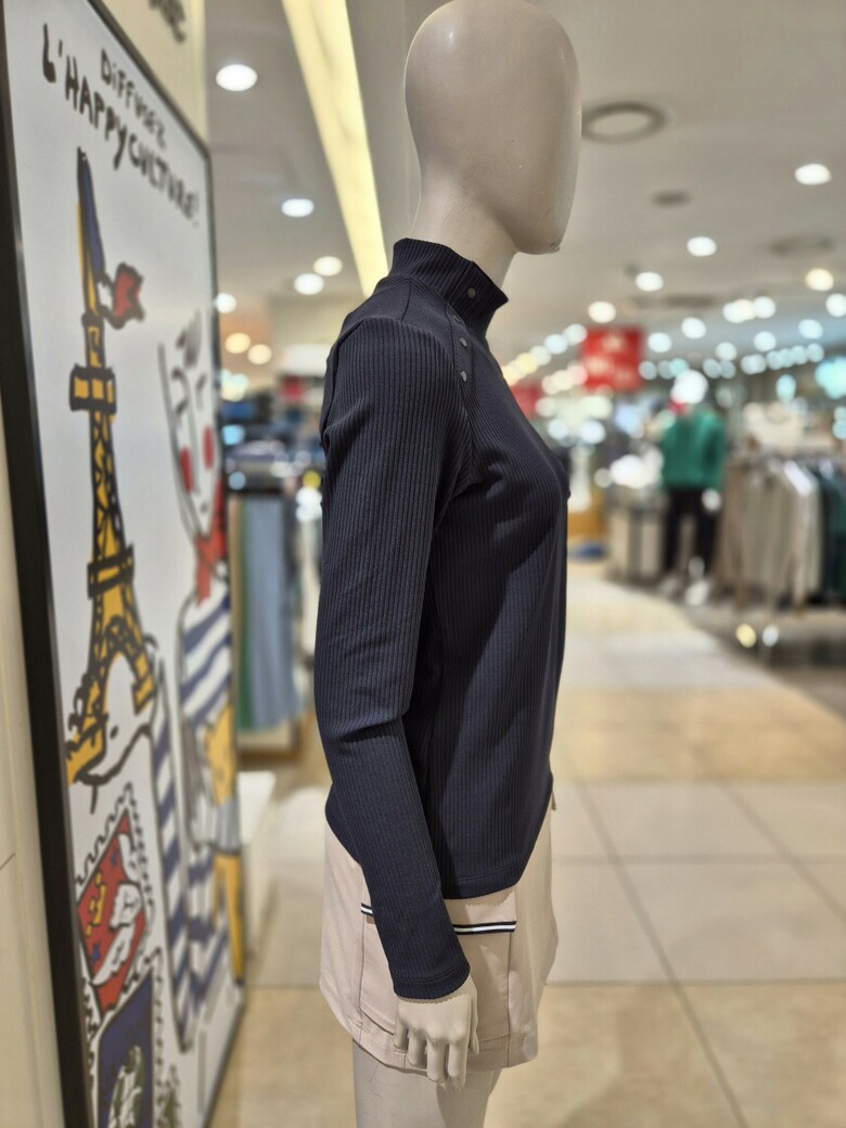 여성 넥라인 포인트 반목 골지 셔츠 BGESTL505 BK