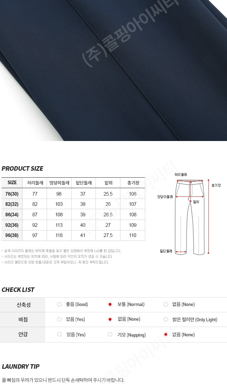 세탁방법 및 취급시 주의사항 : 단독손세탁