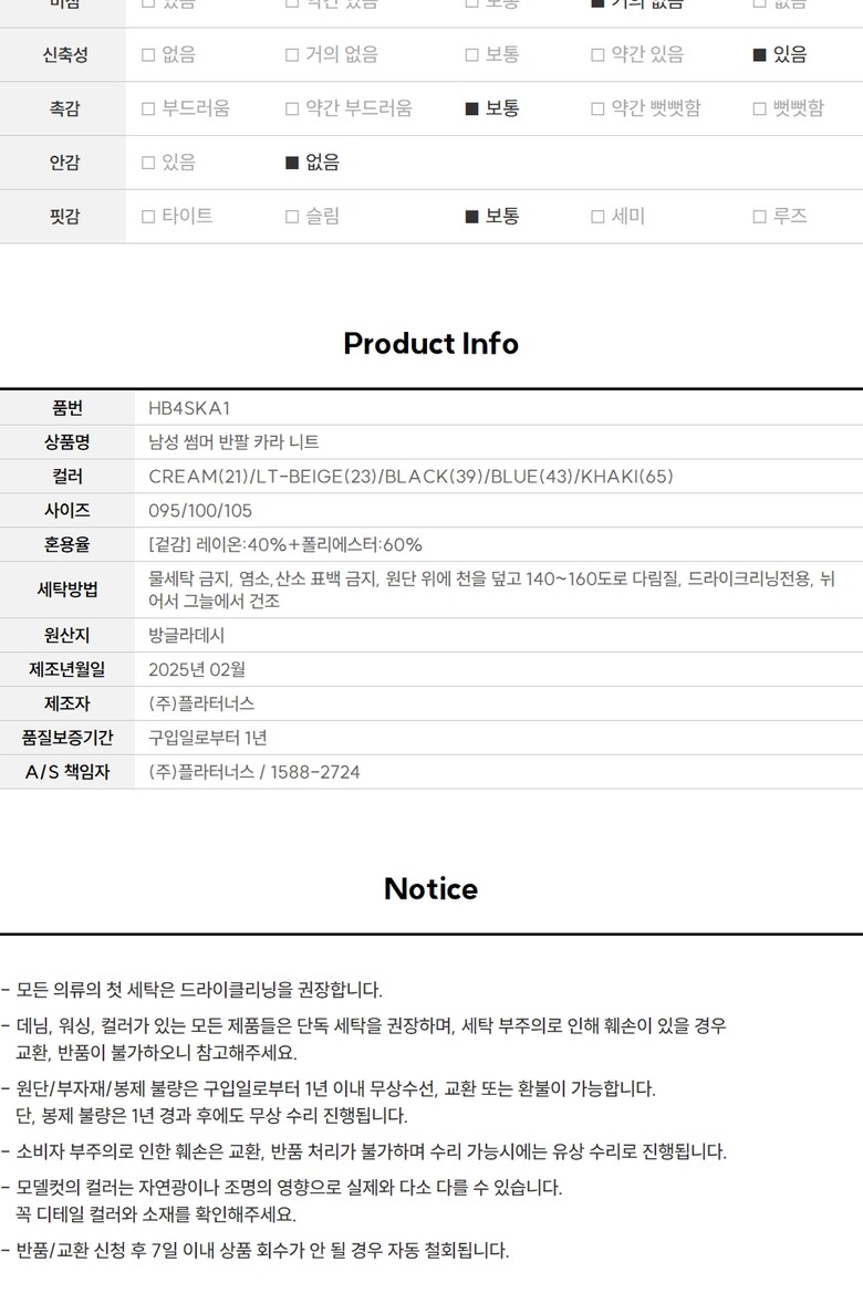 6. 세탁방법 및 취급시 주의사항 상세페이지 참고