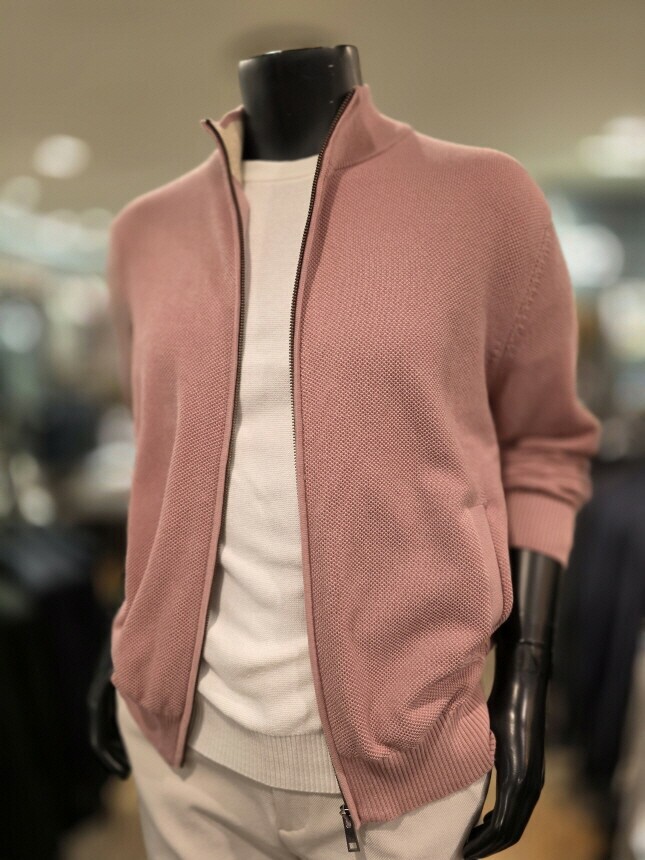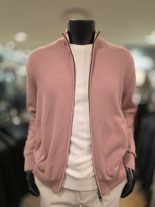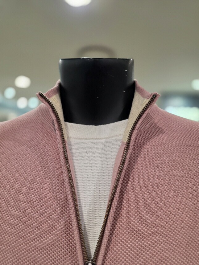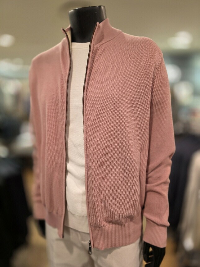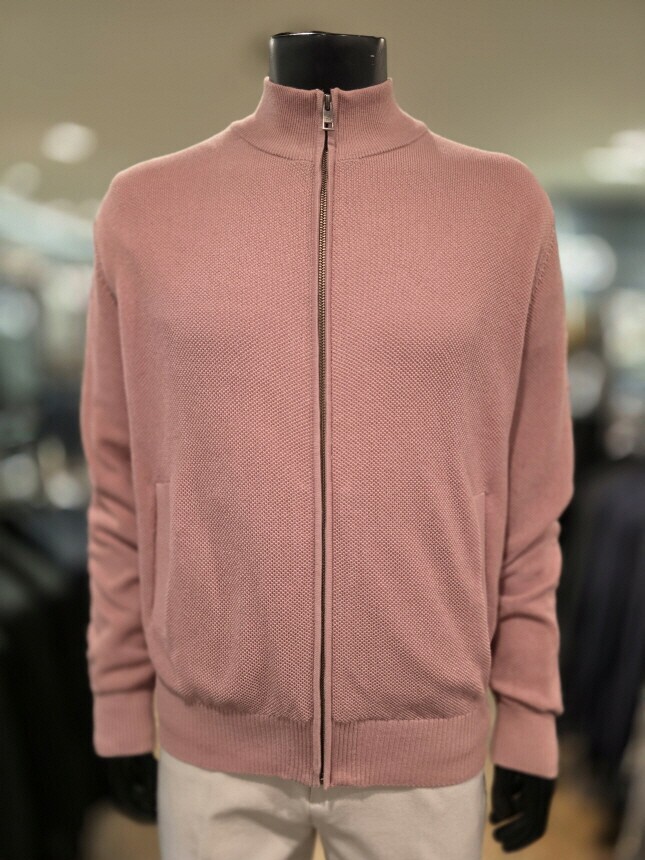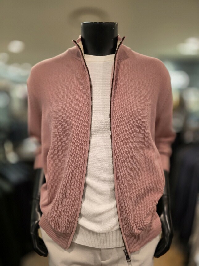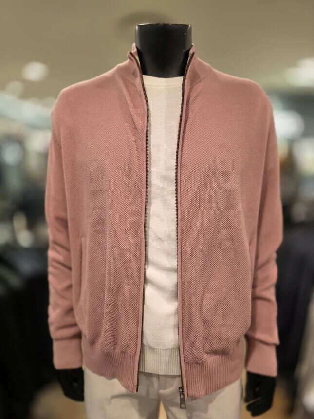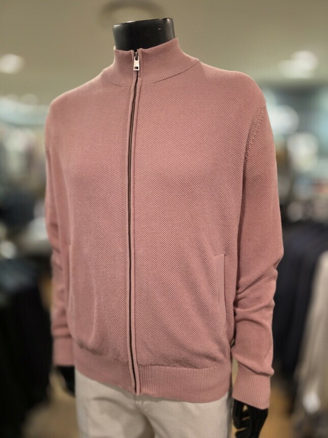 [바쏘옴므] Z1WA92A S/S 면혼방 하이넥 짚업 카디건
