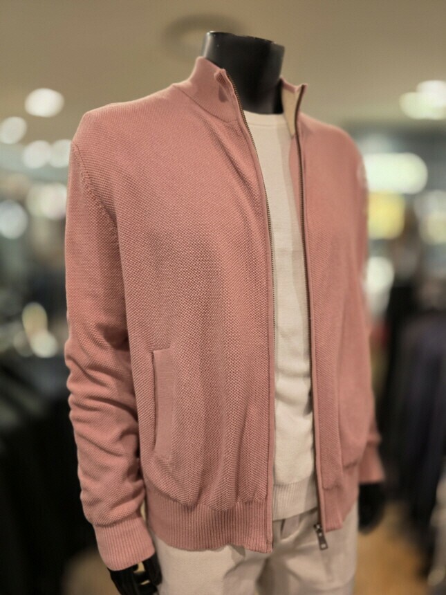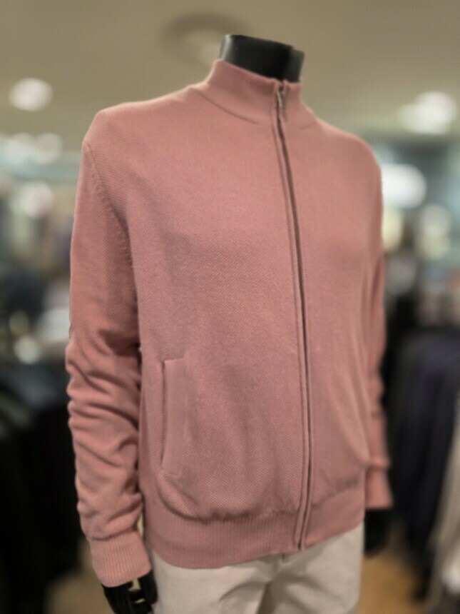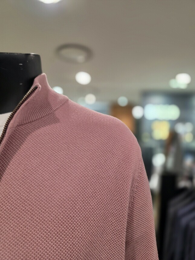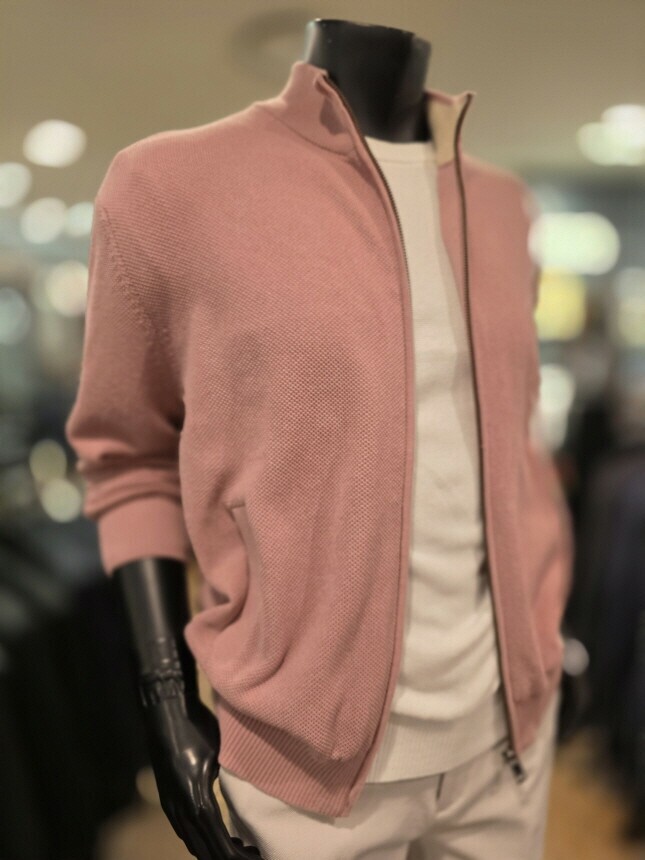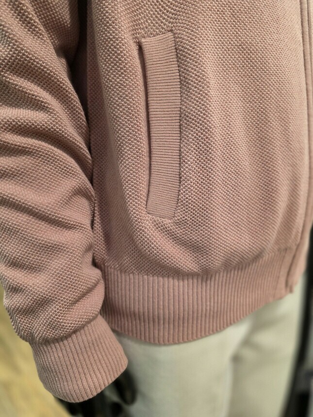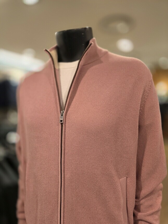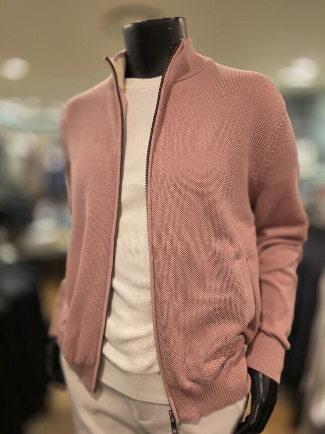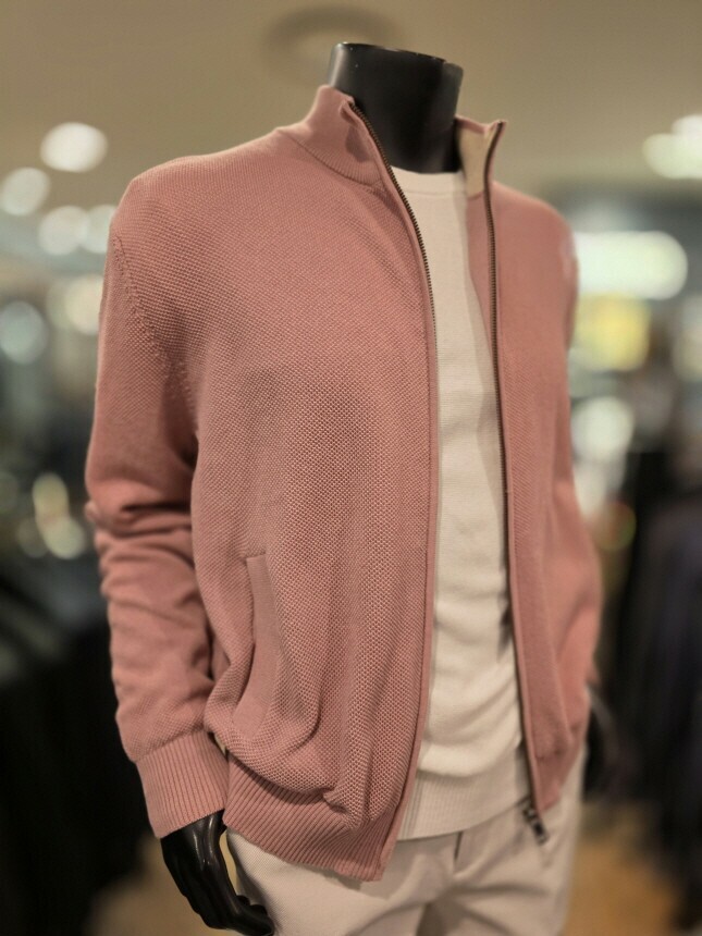 [바쏘옴므] Z1WA92A S/S 면혼방 하이넥 짚업 카디건