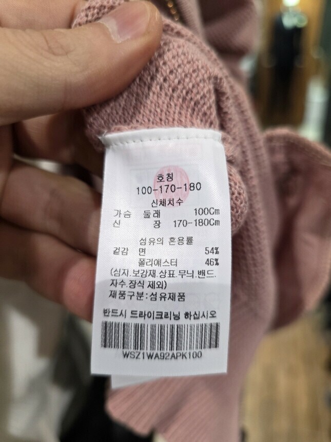 | 1. 제품 소재 (섬유의 조성 또는 혼용률을 백분율로 표시, 기능성인 경우 성적서 또는 허가서) | 겉감 :면 54% , 폴리에스터 46% (심지,보강재,상표,무늬,밴드,,자수, |