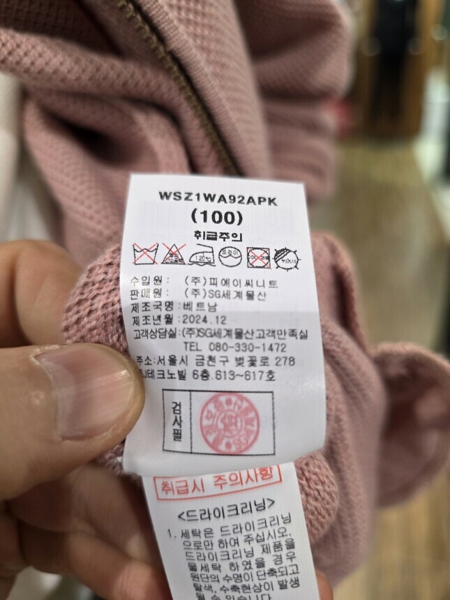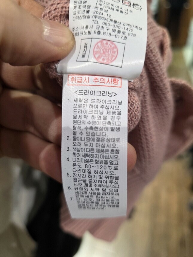 | 6. 세탁방법 및 취급시 주의사항 | 드라이크리닝 |
