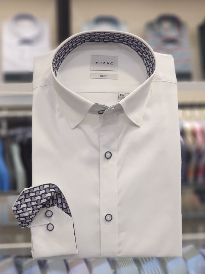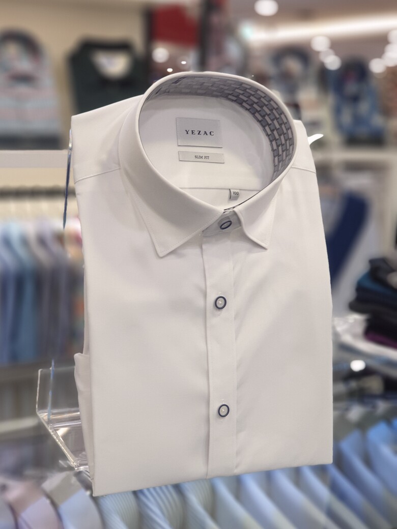 [예작셔츠] 화이트 사방스판 링클프리 카라스냅버튼 슬림핏셔츠 YJ4SIS341WH