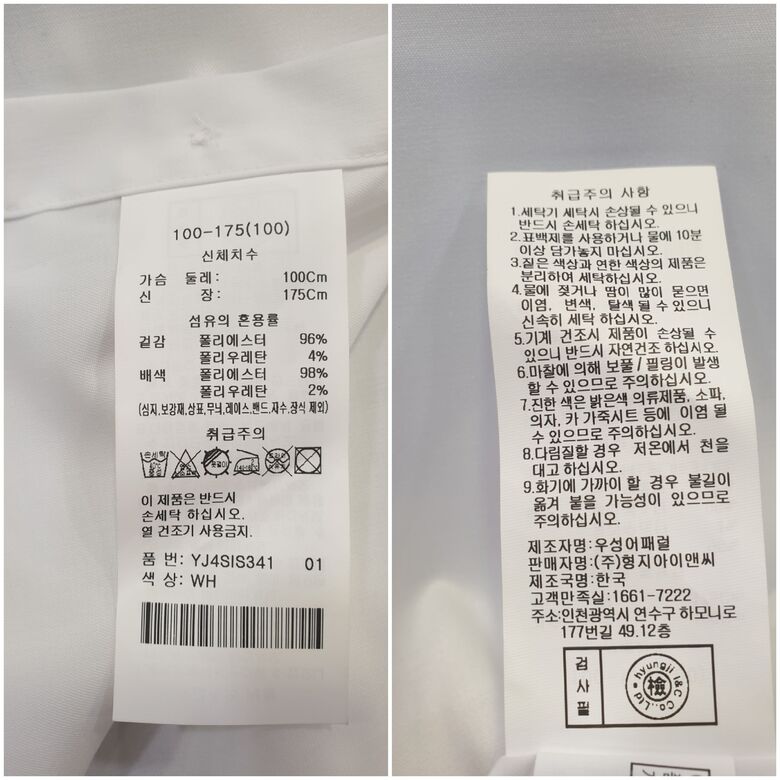 6. 세탁방법 및 취급시 주의사항 | 상품상세참조 |