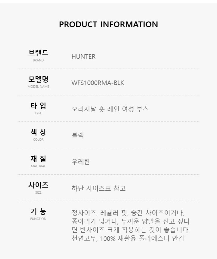 헌터 오리지널 쇼트 여성 레인부츠 블랙 WFS1000RMA-BLK