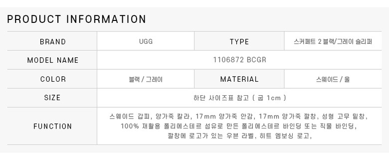 어그 UGG 스커패트2 블랙 그레이 1106872 BCGR 여성 슬리퍼