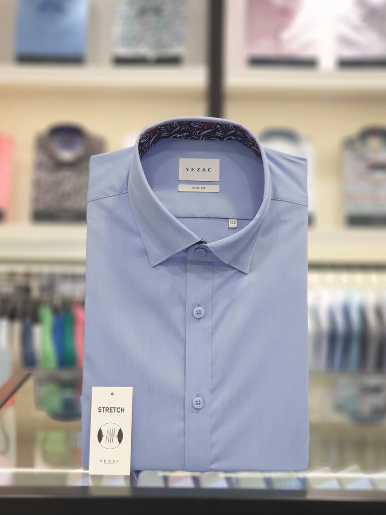 [예작셔츠] 모달 솔리드 사방스판 링클프리 카라스냅버튼 슬림핏셔츠 YJ4SIS343BL