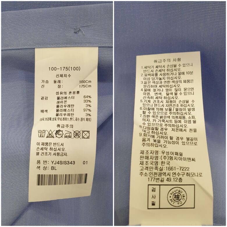 6. 세탁방법 및 취급시 주의사항 | 상품상세참조 |