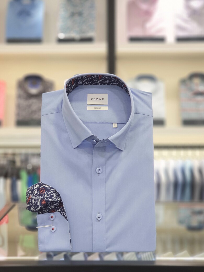 [예작셔츠] 모달 솔리드 사방스판 링클프리 카라스냅버튼 슬림핏셔츠 YJ4SIS343BL