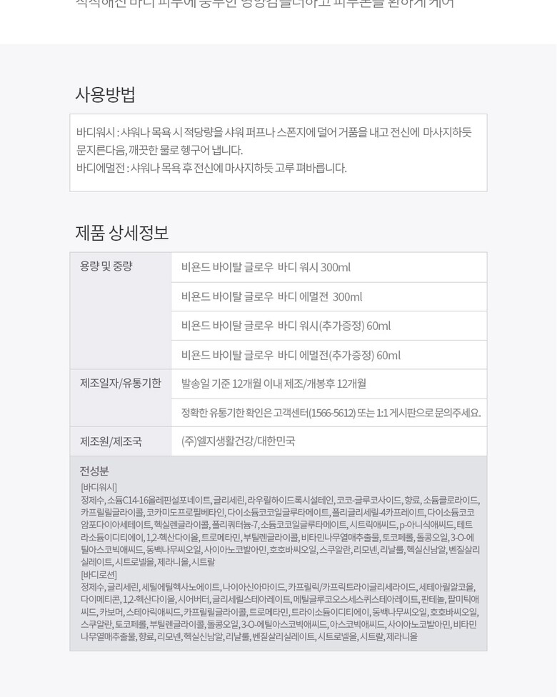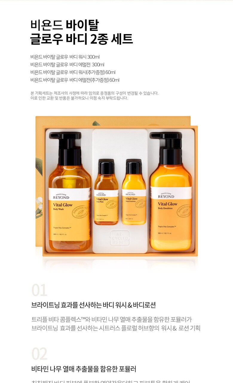 [비욘드] 바이탈 글로우 바디 워시 로션 2종 스페셜 세트