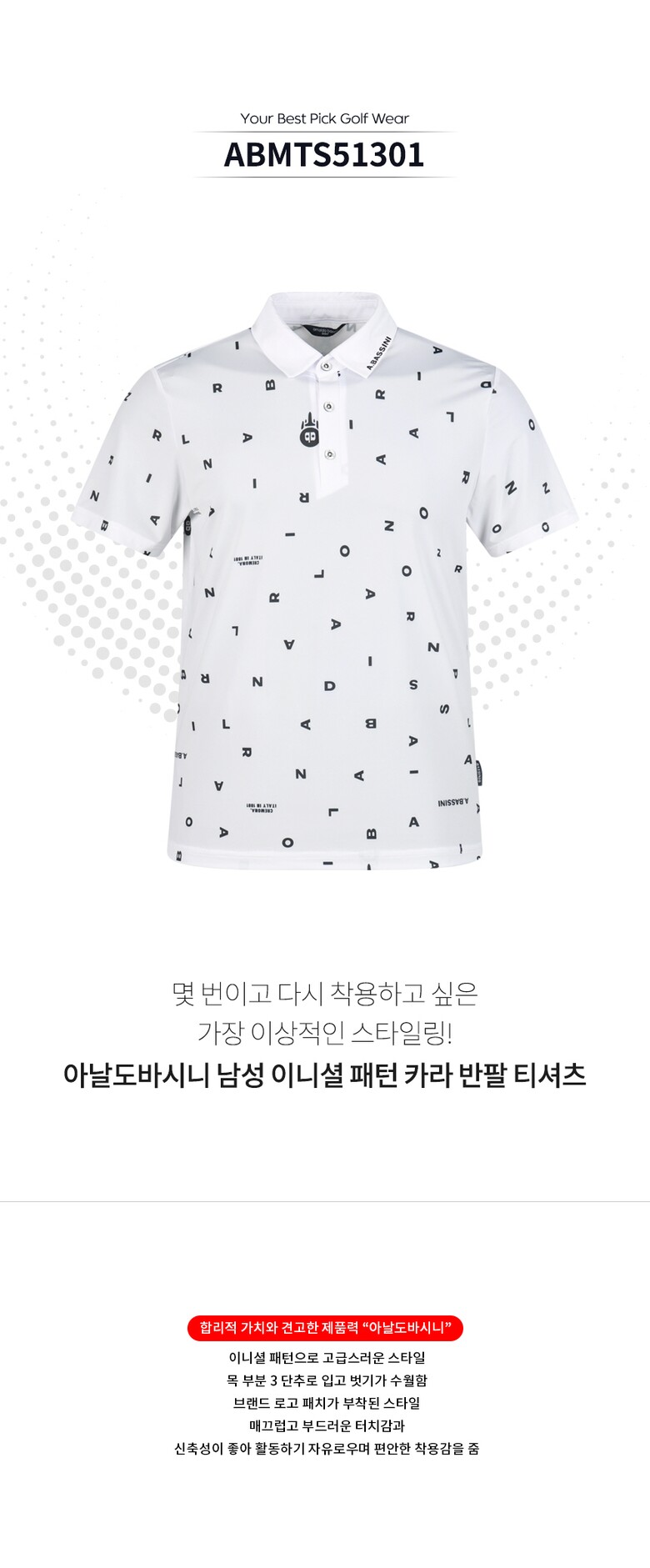 아날도바시니 남성 이니셜 패턴 카라 반팔 티셔츠 ABMTS51301