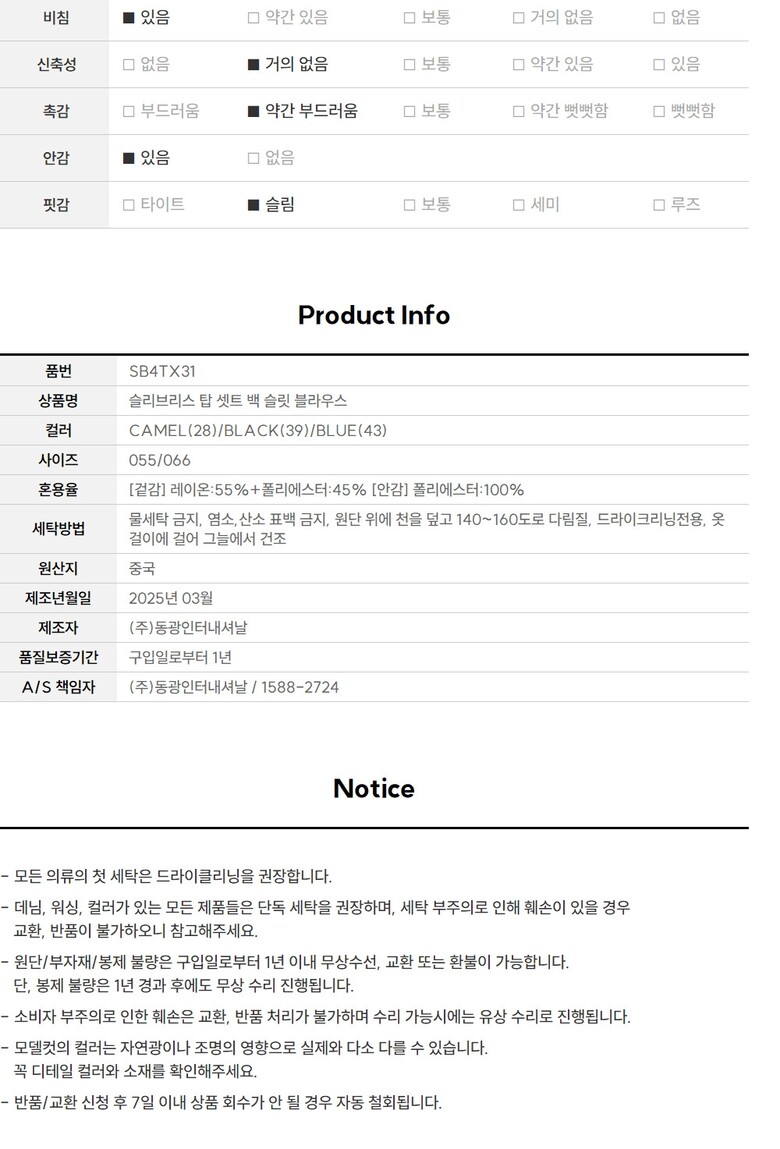 SB4TX31(슬리브리스 탑 세트 블라우스)