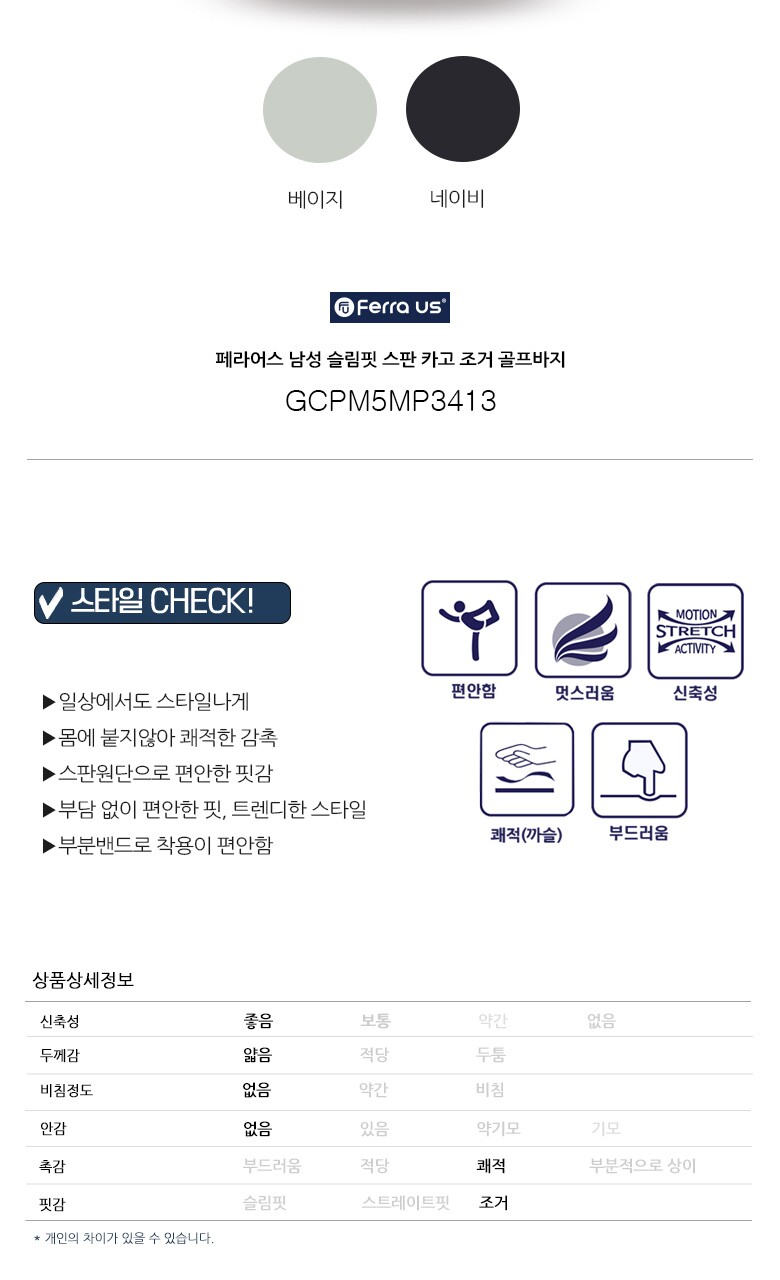 골피아 남성 슬림핏 스판 카고 조거 골프바지 GCPM5MP3413