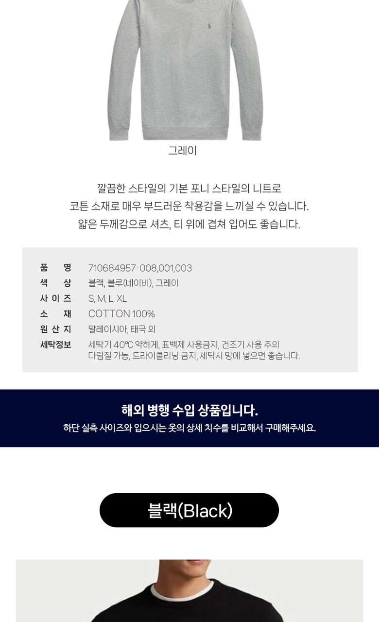 폴로랄프로렌 피마코튼 포니 자수 니트