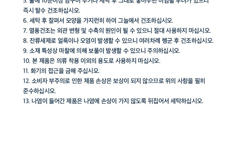 6. 세탁방법 및 취급시 주의사항 | 상품상세 참조 |