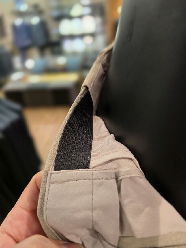 | 1. 제품 소재 (섬유의 조성 또는 혼용률을 백분율로 표시, 기능성인 경우 성적서 또는 허가서) | 겉감 : 폴리에스터 97% , 폴리우레탄 3% 주머니감 : 폴리에스터 80% |